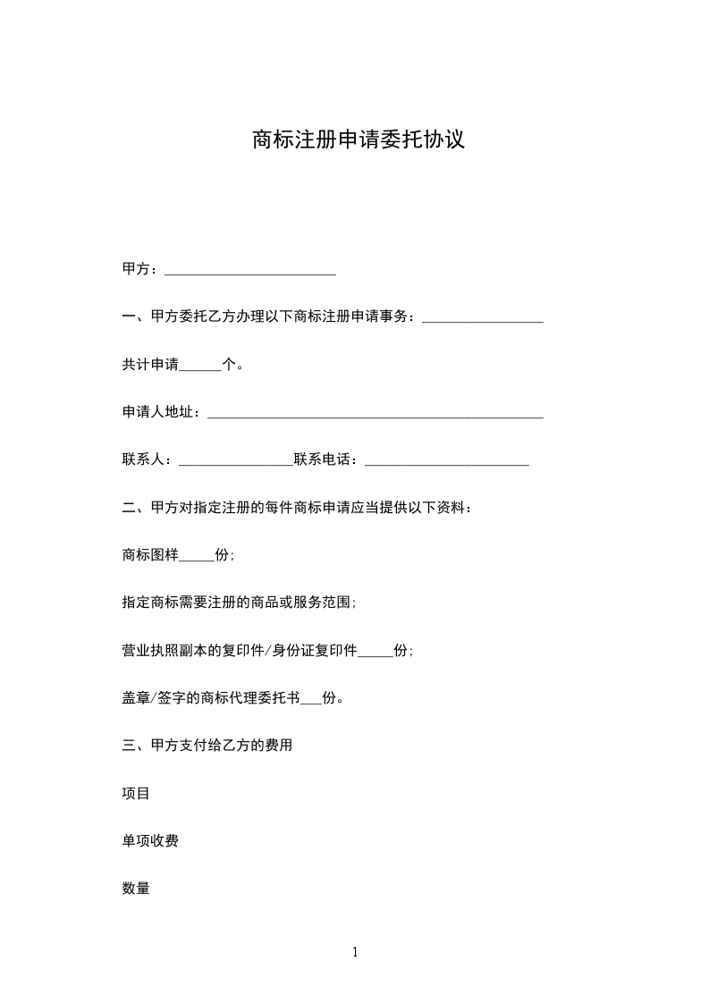 1.1收费标准:每份商标注册申请费1000元整(限1个类别中的10个商务项目,每超过1个商务项目加收100元)。每份集体商标注册申请费3000元整,每份证明商标注册申请费3000元整。商标注册申请书(附页)其他共同申请人名义列表:无