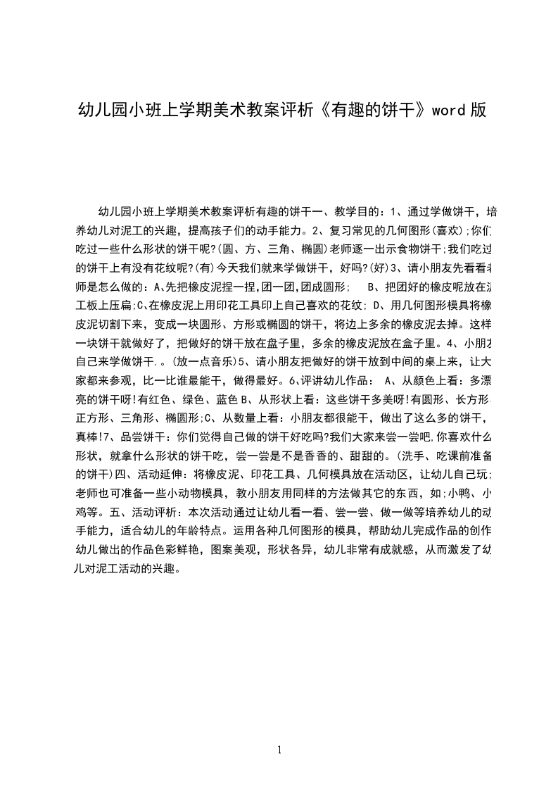 1、通过学做饼干,培养幼儿对泥工的兴趣,提高孩子们的动手能力。