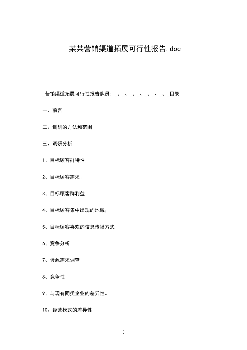 _营销渠道拓展可行性报告队员:_、_、_、_、_、_、_、_目录