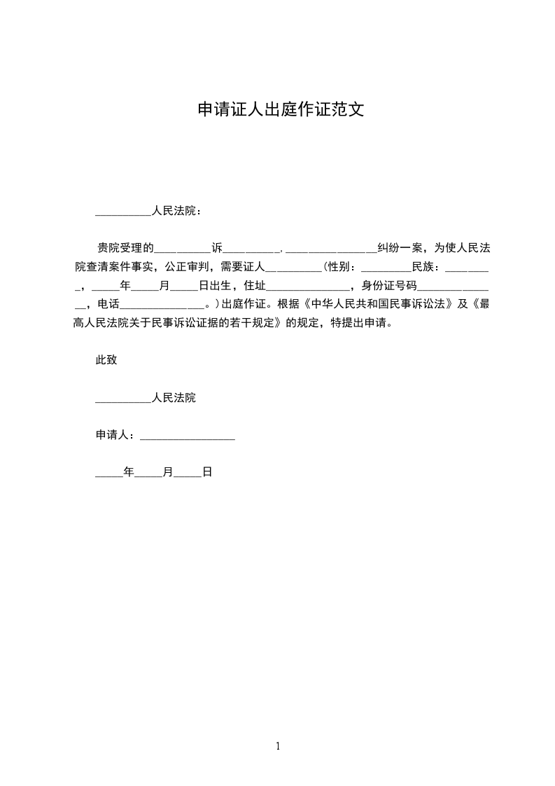 申请事由:通知证人________________出庭作证。