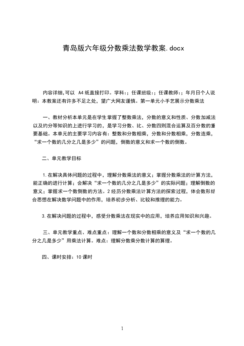 1.结合现实情境和直观图示,理解一个数乘分数的意义,探索并掌握分数乘分数的计算方法,理解算理。