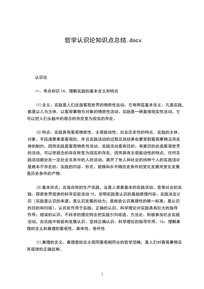 (1)实践决定认识,实践是认识的来源、实践是认识发展的动力、实践是检验认识真理性的唯一标准、实践是认识目的和归宿。