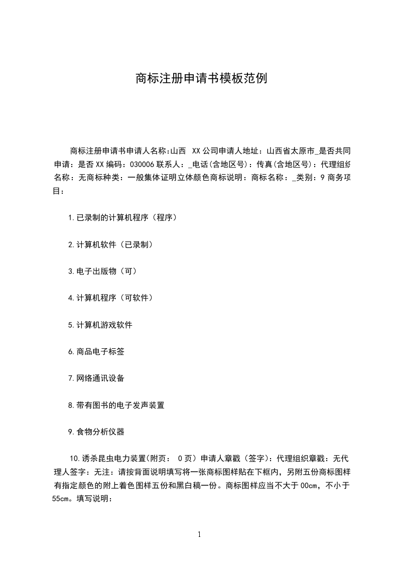 商标注册申请书(附页)