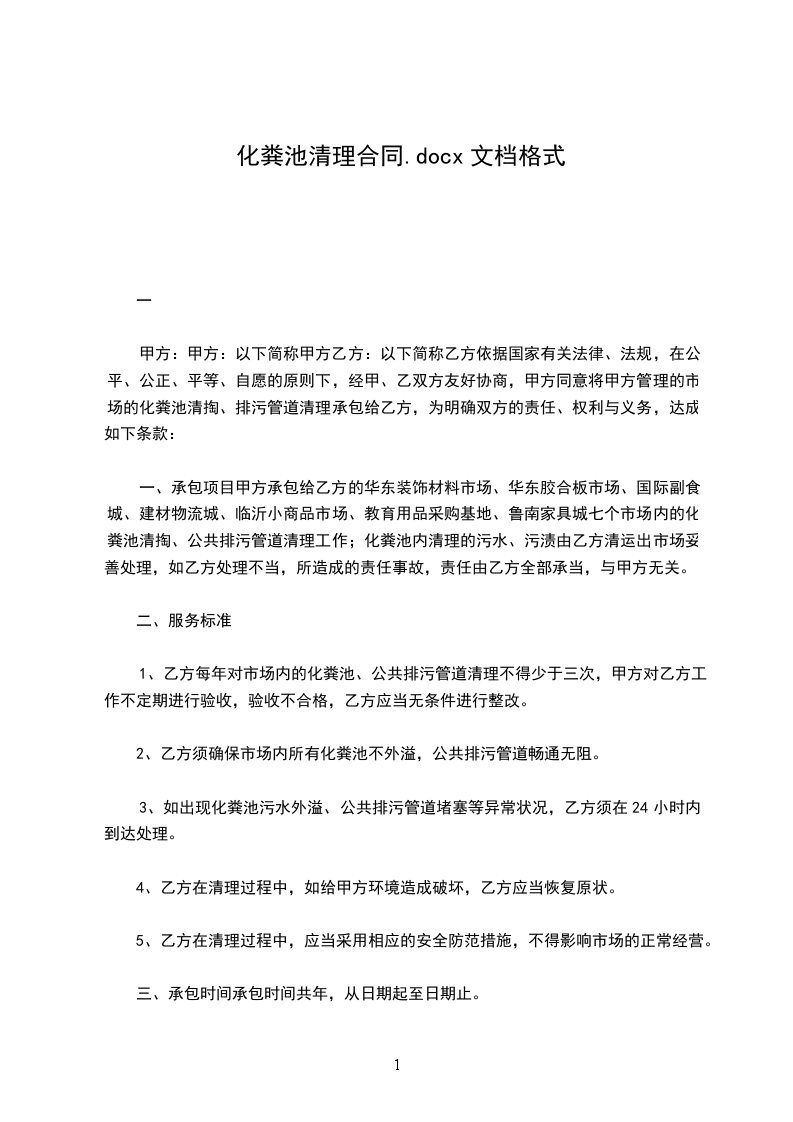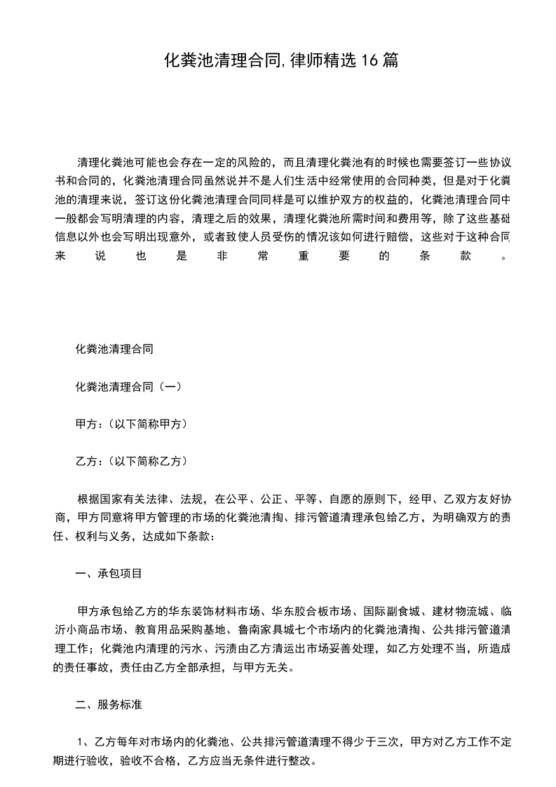 六、清理结果:保证被清理的生化池能够正常起生化作用,年内(从验收之日开始计算)保证化粪池及主管道能正常使用,如出现堵塞,乙方必须将在小时内到达现场,并及时排除堵塞物,且不再收取任何费用。