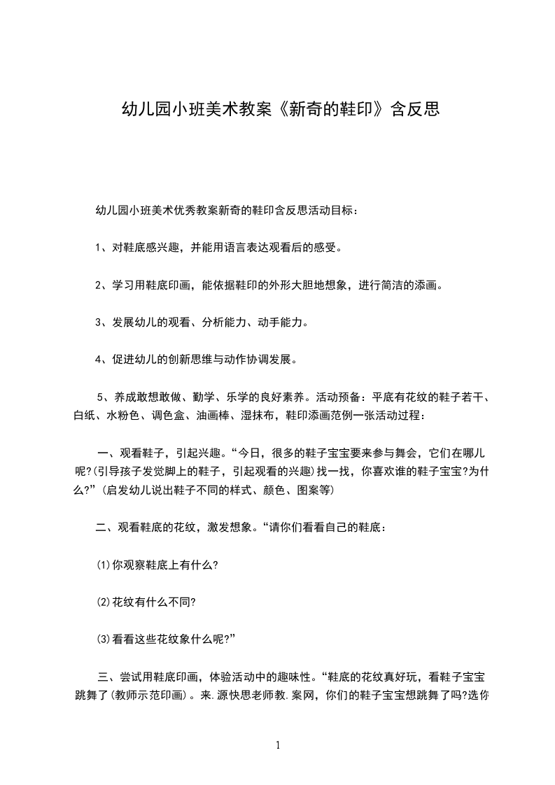 幼儿园小班美术优秀教案新奇的鞋印含反思活动目标: