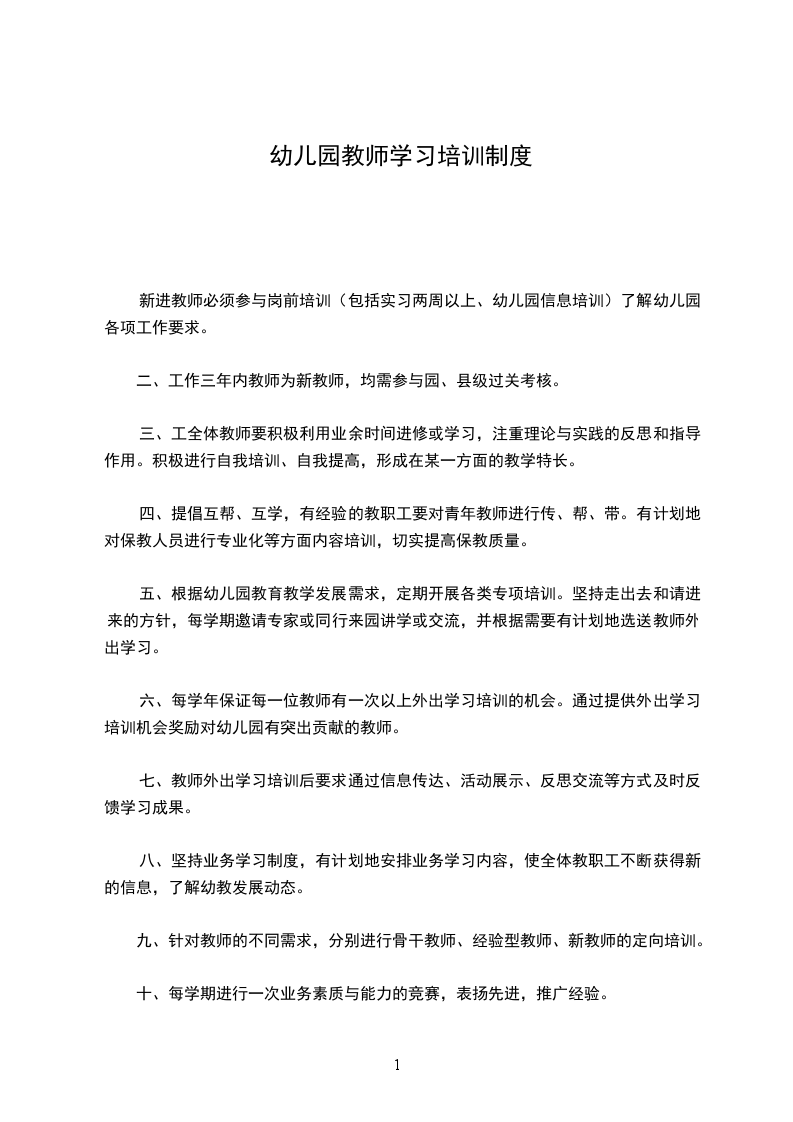 六、每学年保证每一位教师有一次以上外出学习培训的机会。通过提供外出学习培训机会奖励对幼儿园有突出贡献的教师。
