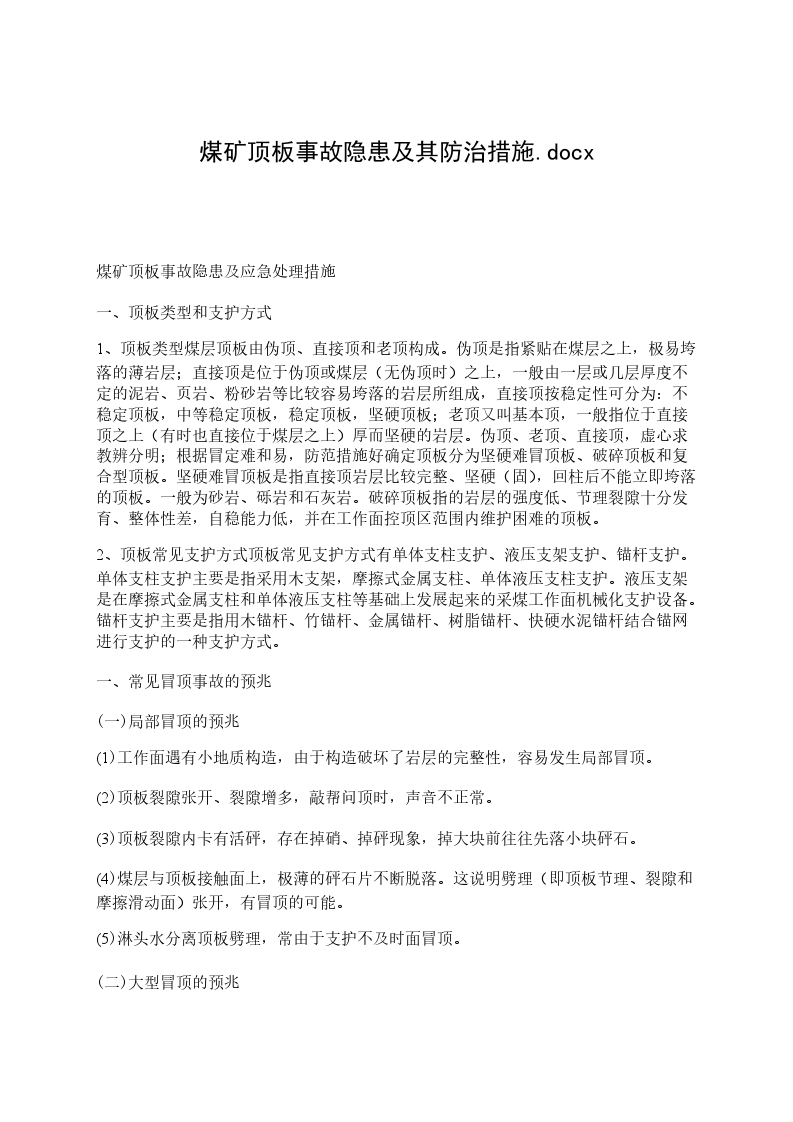 2、破碎顶板大面积漏垮型冒顶预防由于煤层倾角大,直接顶又异常破碎,工作面支护不及时,在某个局部地点发生冒漏,破碎顶板就可能从这个地方开始沿工作面往上全部漏空,造成支架失稳,导致漏垮型工作面冒顶。预防漏垮型冒顶的措施有: