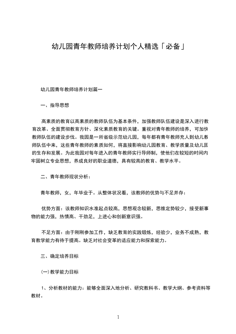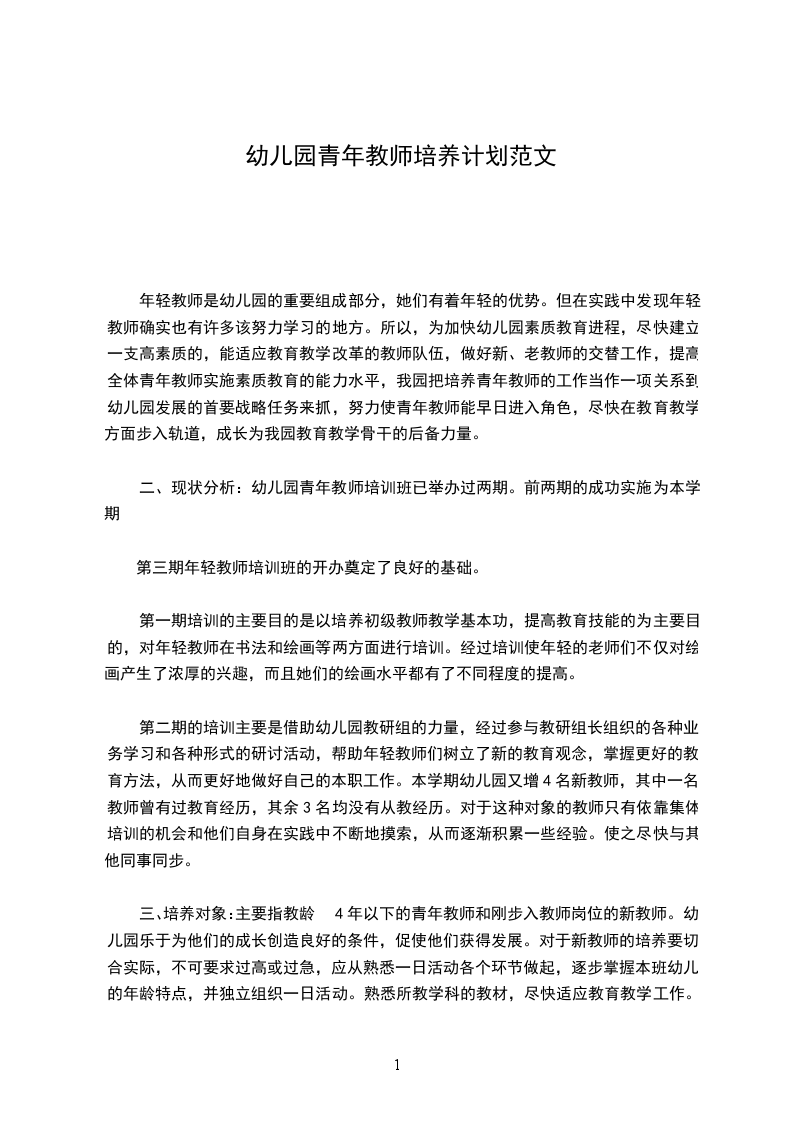 幼儿园青年教师培养计划