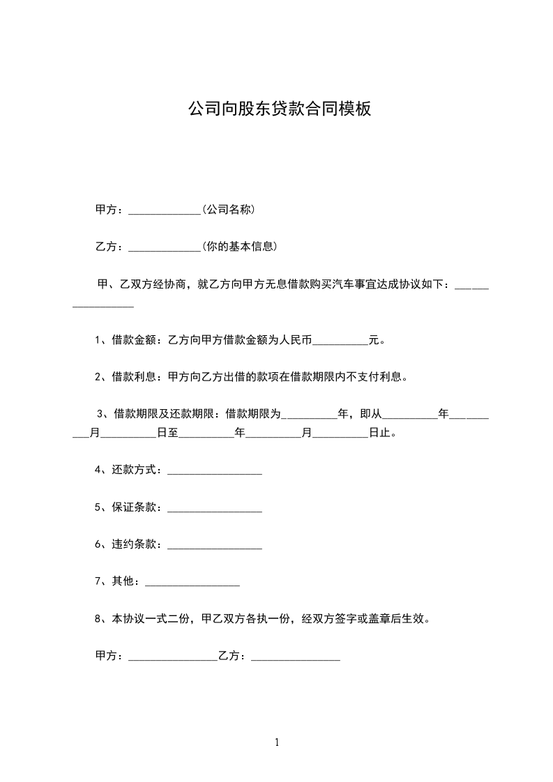 1、借款金额:乙方向甲方借款金额为人民币__________元。