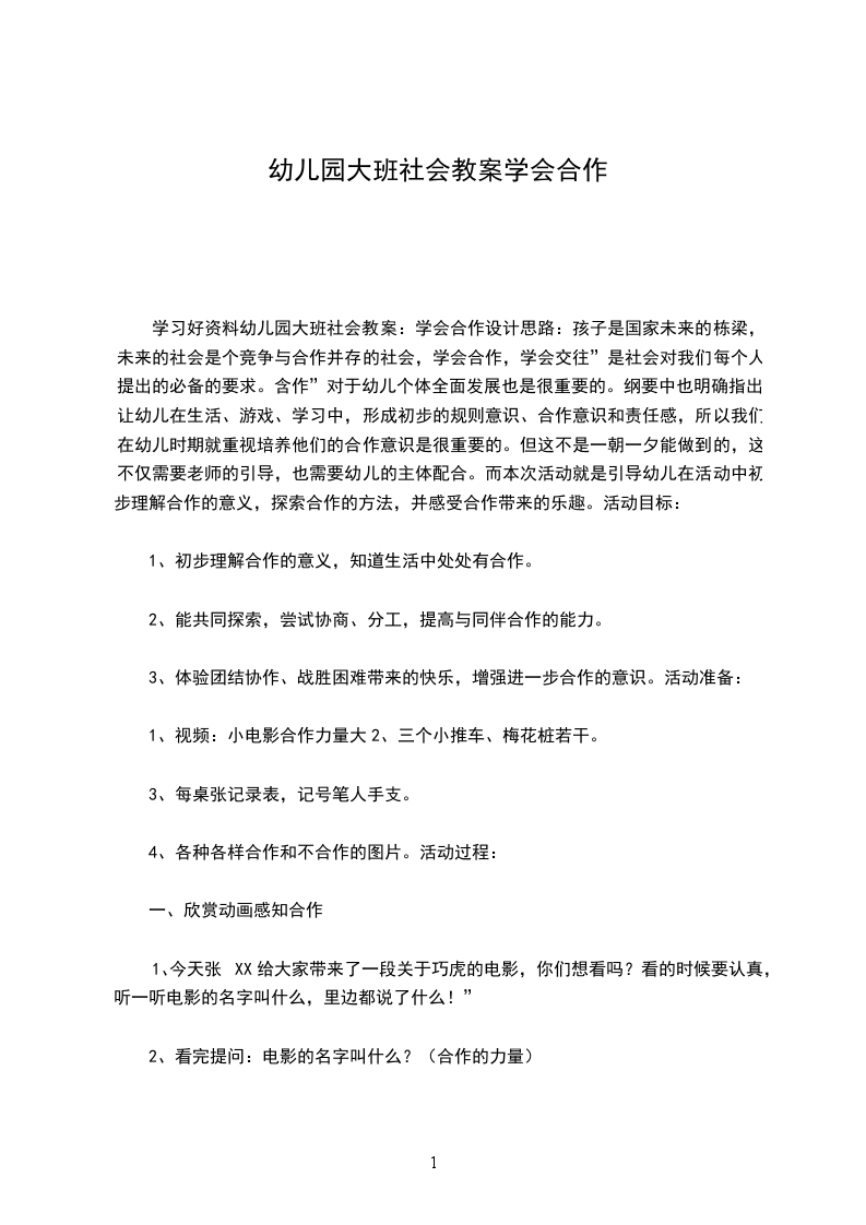 2、愿意关注马路边的事物,能在群众面前表述。活动准备:幼儿操作材料活动过程: