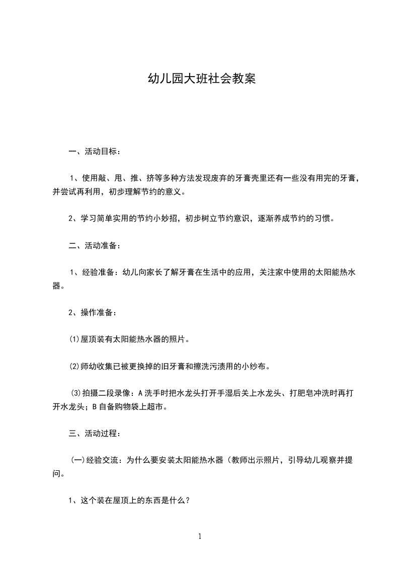 1、经验准备:幼儿向家长了解牙膏在生活中的应用,关注家中使用的太阳能热水器。