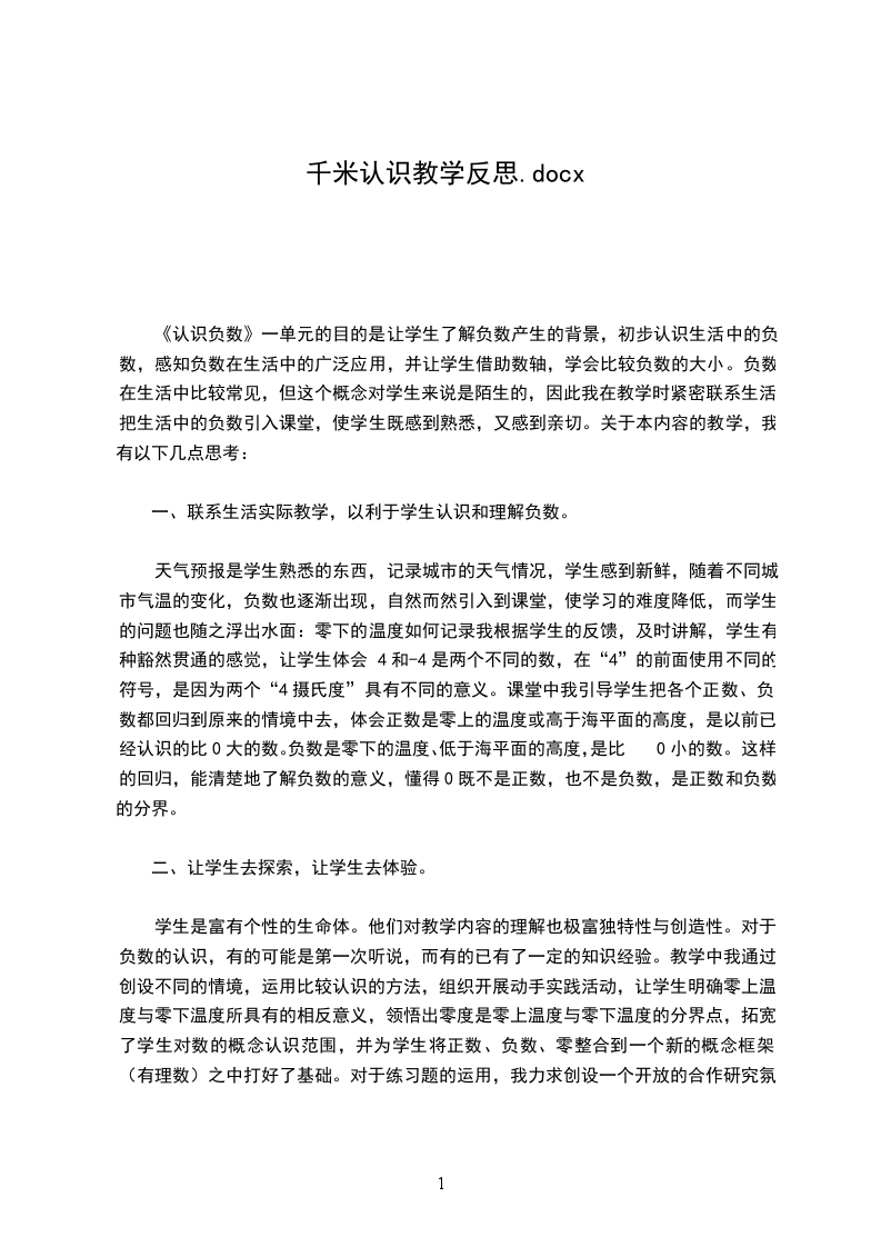 1.在你的印象中你认为千米有多长?请你举例说一说。