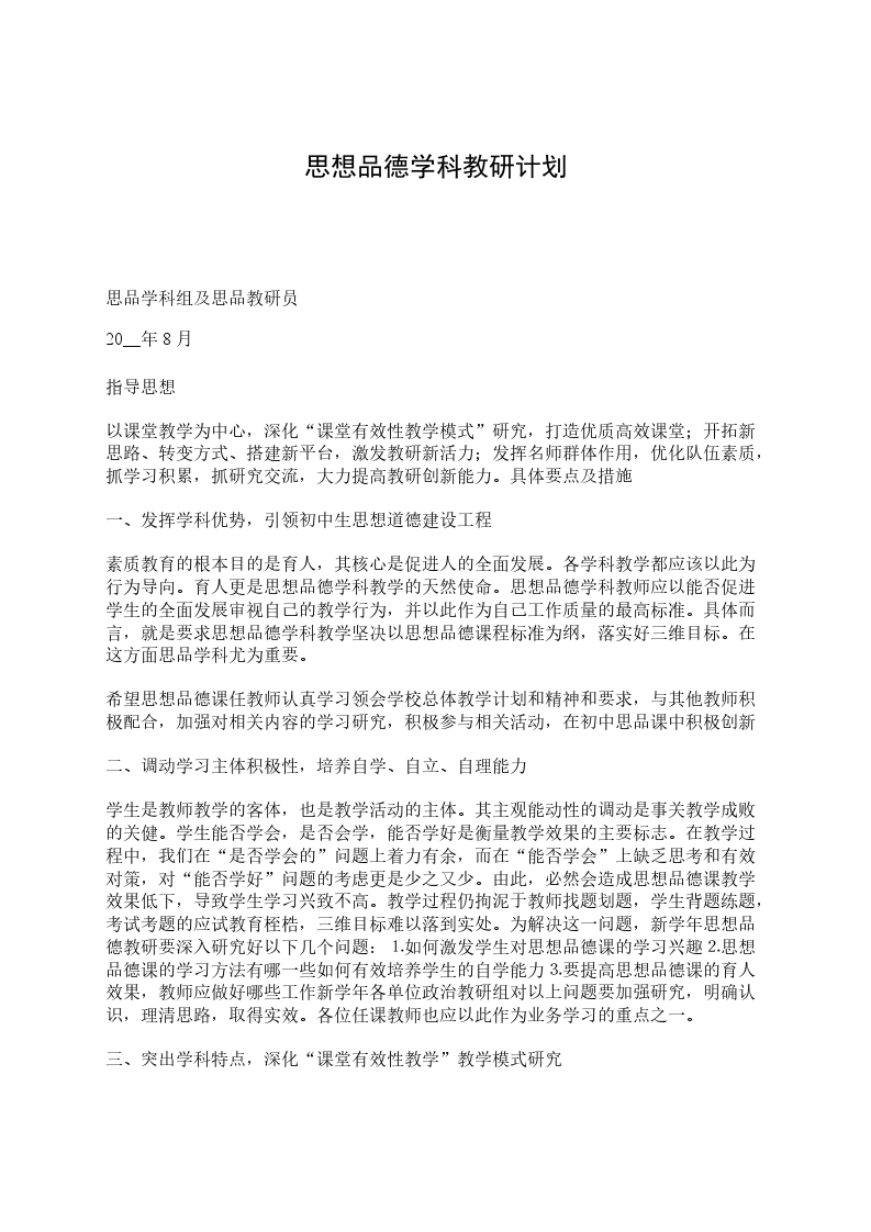 一、指导思想:认真贯彻基础教育课改的思想精神,推进基础教学改革,进一步发挥思品教研组工作在推进素质教育和实现教育现代化中的作用,提高教育质量,促进学生发展。
