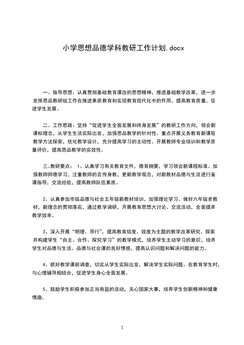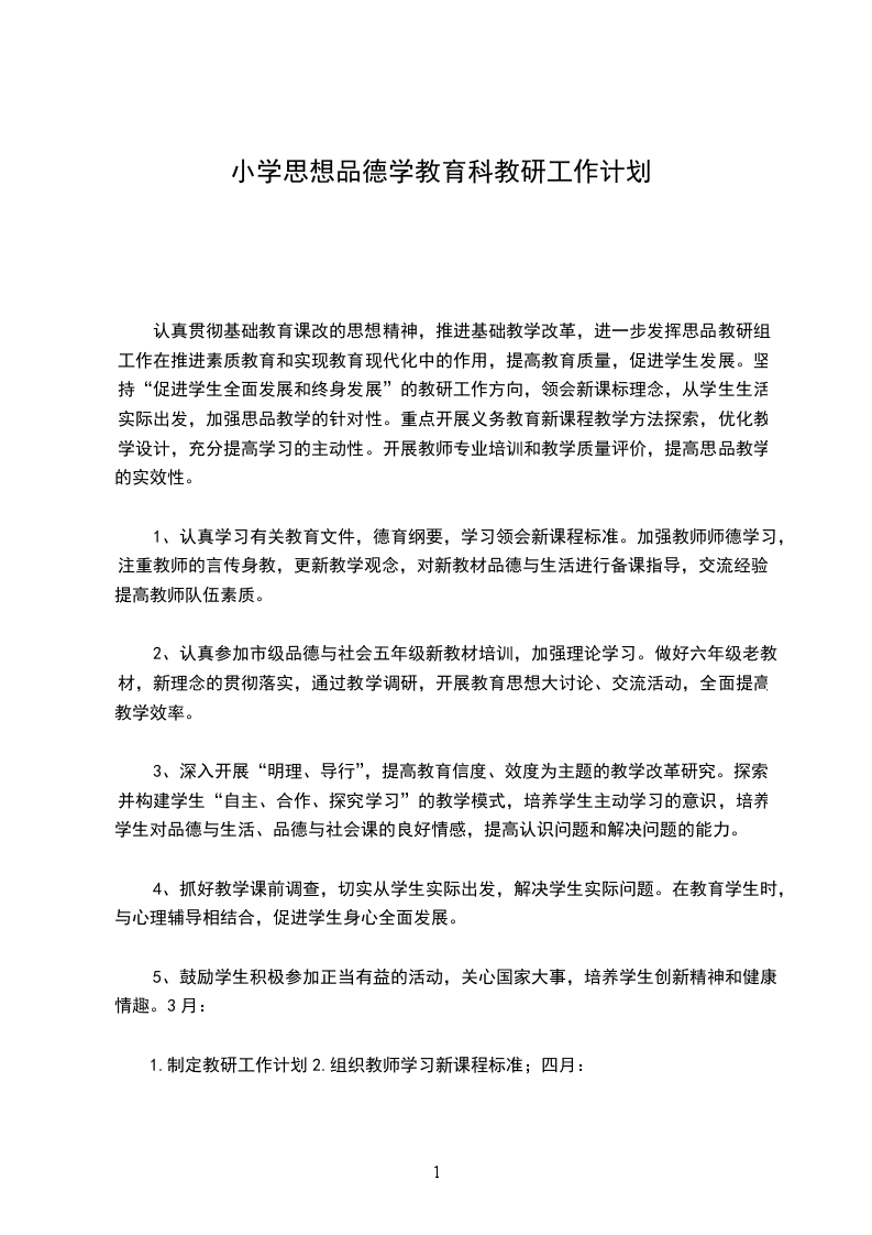 三、教研要点:1、认真学习有关教育文件,德育纲要,学习领会新课程标准。加强教师师德学习,注重教师的言传身教,更新教学观念,对新教材品德与生活进行备课指导,交流经验,提高教师队伍素质。