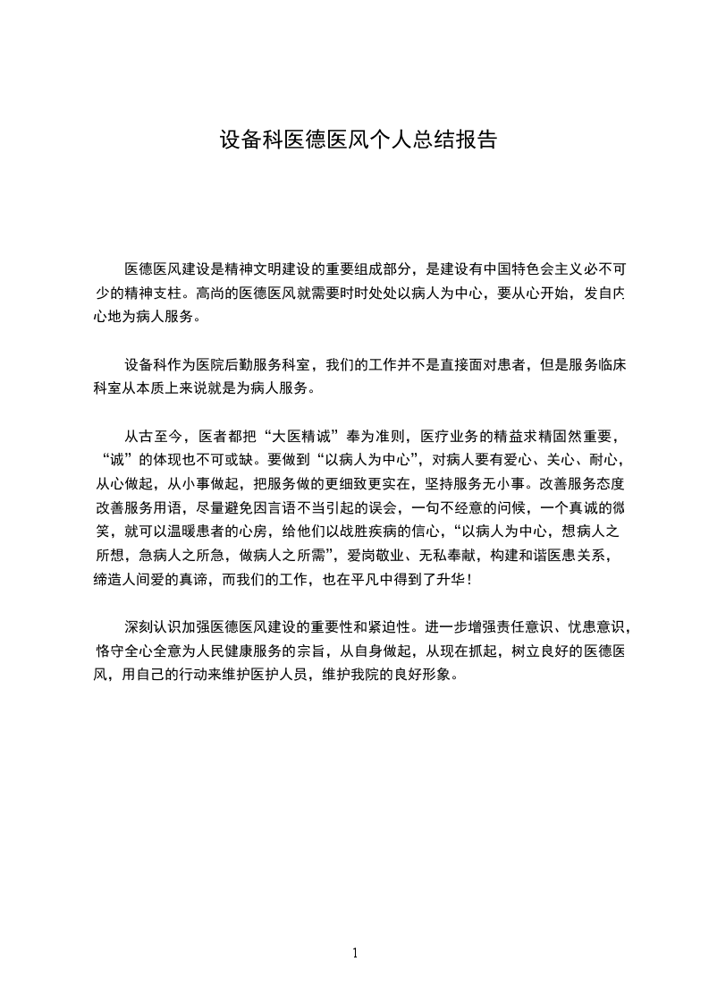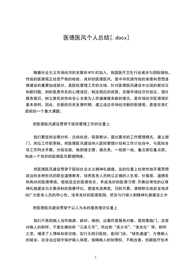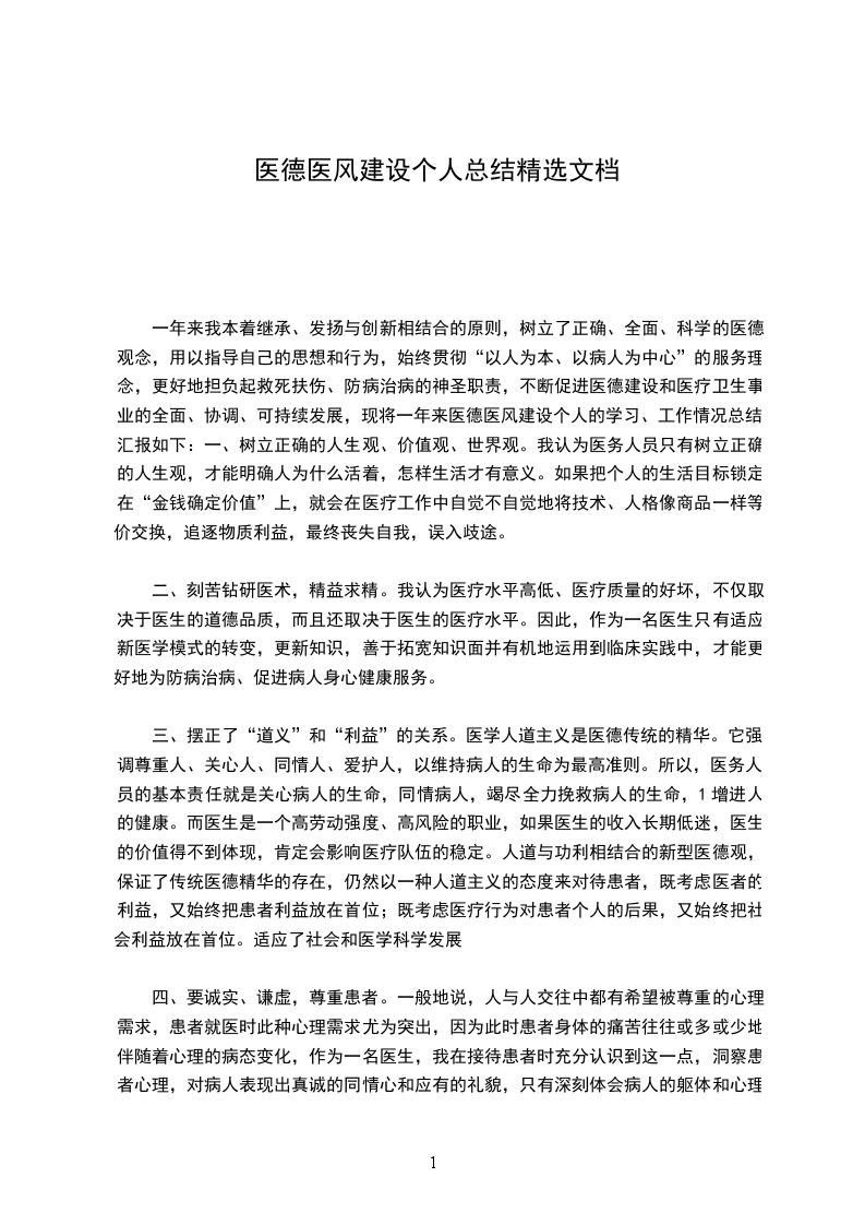 一年来我本着继承、发扬与创新相结合的原则,树立了正确、全面、科学的医德观念,用以指导自己的思想和行为,始终贯彻“以人为本、以病人为中心”的服务理念,更好地担负起救死扶伤、防病治病的神圣职责,不断促进医德建设和医疗卫生事业的全面、协调、可持续发展,现将一年来医德医风建设个人的学习、工作情况总结、汇报如下: