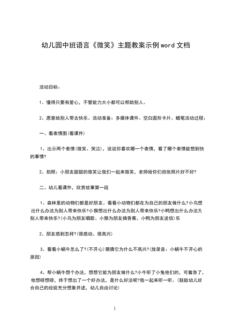 四、跳邀舞歌声与微笑,引导幼儿体用微笑传递快。【故事】小:“我愿意为朋友唱歌,他们高。”大象:“我愿意为朋友干活,他们高。”小X:“我愿意为朋友送信,他们高。”小牛好着急,他能为朋友做什么呢?一天,一群小蚂蚁正忙着搬西,他从小牛身走过时,小蜗牛向他们友好地微笑。小蜗牛想:对呀,我可以把微笑送给朋友们,他高呀!小蜗牛就画了好多张图片,上面一只小蜗牛在甜甜地微笑。朋友看到这张图片,也高地笑了。活目: