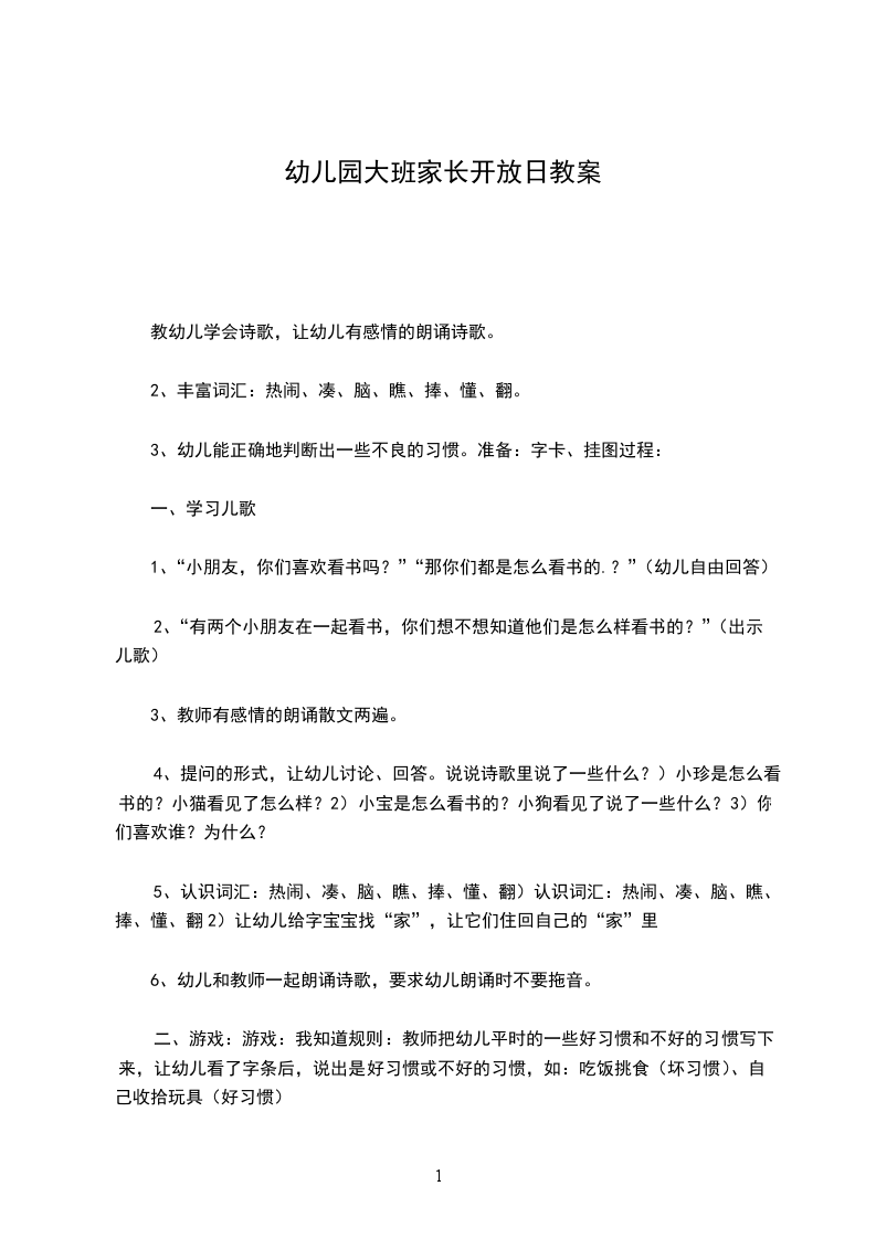 3、幼儿能正确地判断出一些不良的习惯。准备:字卡、挂图过程: