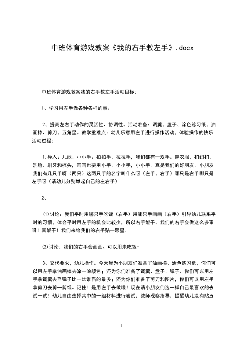 (1)讨论:我们平时用哪只手吃饭(右手)用哪只手画画(右手)引导幼儿联系平时的习惯,体会平时用左手的机会比较少,所以右手能干。我们的右手会做这么多事呀!真能干!我们来给我们的右手贴一颗星。