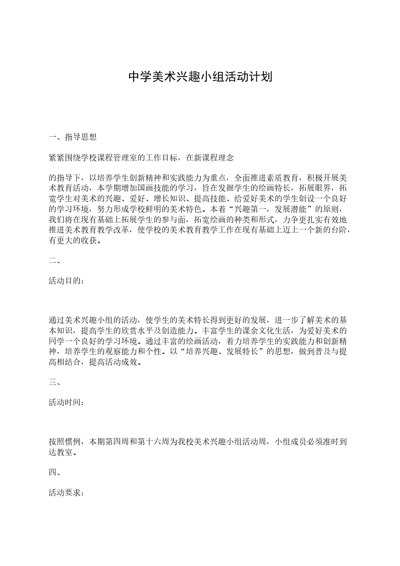 2、还有部分学生意志力还有待锻炼,创作力还有待提高。总之,社团活动丰富了学生的课余生活,增强了学生学习的自信和自觉,让更多和学生热爱喜欢美术这门科目,并对美术的认知不再狭隘。我期待着有一天学生们都能建立自己的审美意识,都储备了丰富的属于自己的美术语言和思维,用所学服务于生活,用具有创造力和前瞻性的表现形式去展现美术,展示这门科目的独特魅力美术社团活动总结207-20__年学年度第二学期灵沼中学李黛玉20__年6月25日