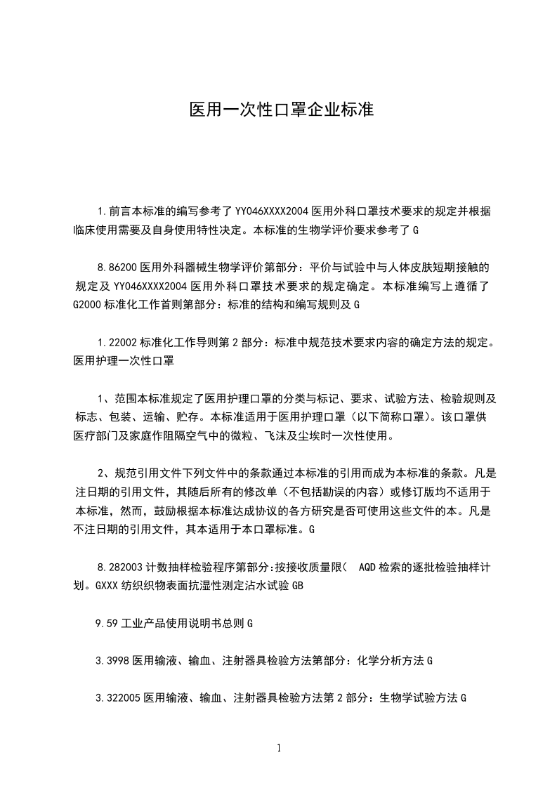 1.前言本标准的编写参考了YY046XXXX2004医用外科口罩技术要求的规定并根据临床使用需要及自身使用特性决定。本标准的生物学评价要求参考了G