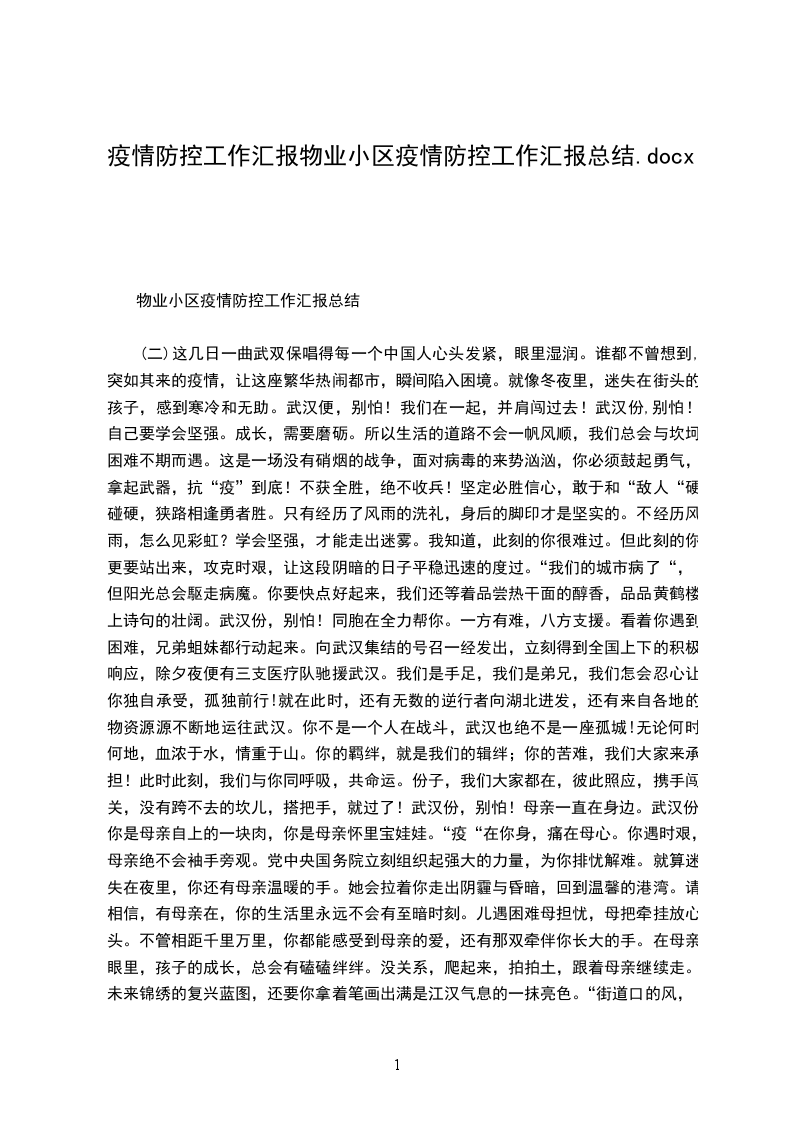 物业小区疫情防控工作汇报总结