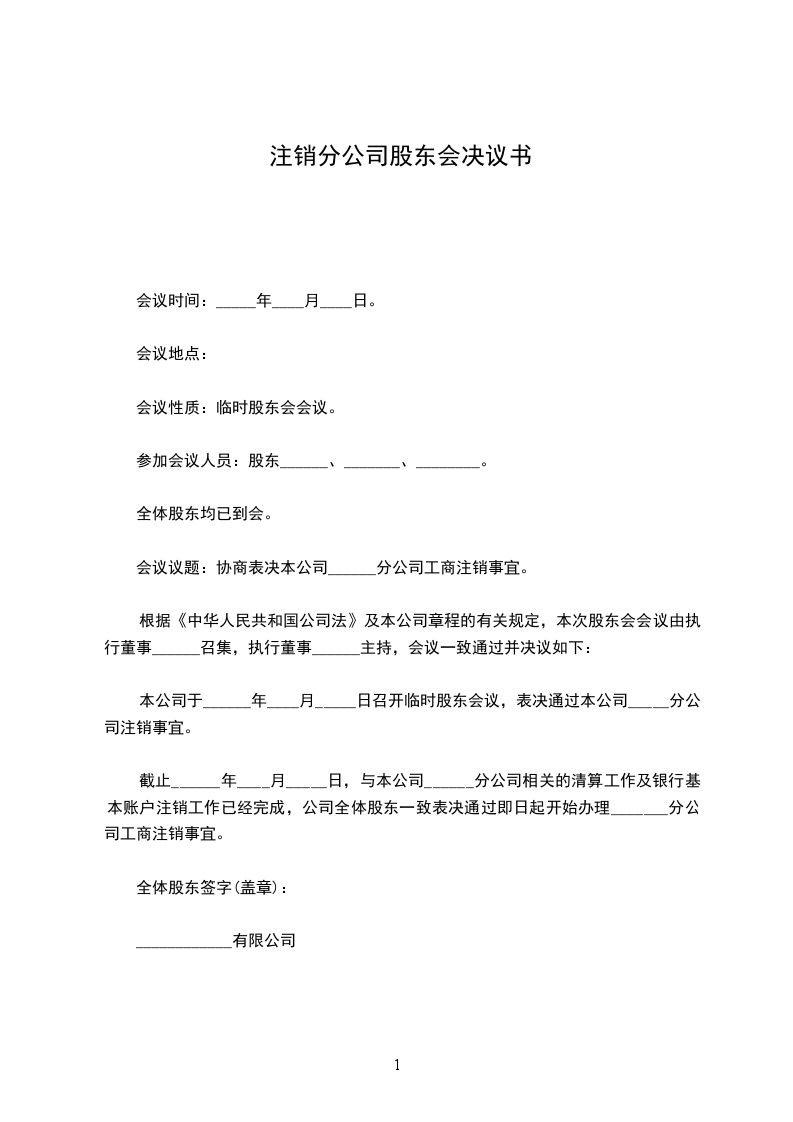 根据《公司法》及公司章程,_______________有限公司于_____年_____月_____日以(书面等)形式通知了公司全体股东在_____年_____月_____日(地点)召开股东会,出席本次会议的股东共_____人,代表公司股东_____%的表决权;未出席本次会议的股东共人,代表公司股东_______%的表决权。所作出决议经公司股东表决权的_____%通过,弃权或反对的占股东表决权的_______%,符合《公司法》及公司章程。决议事项如下: