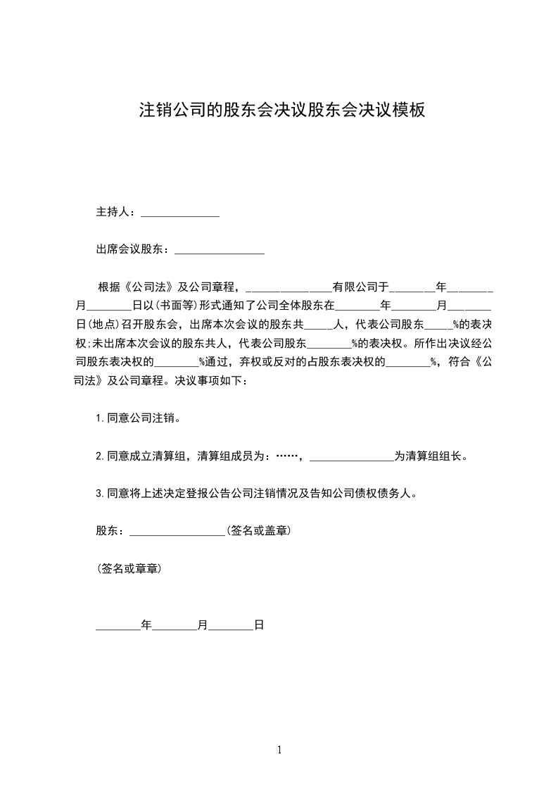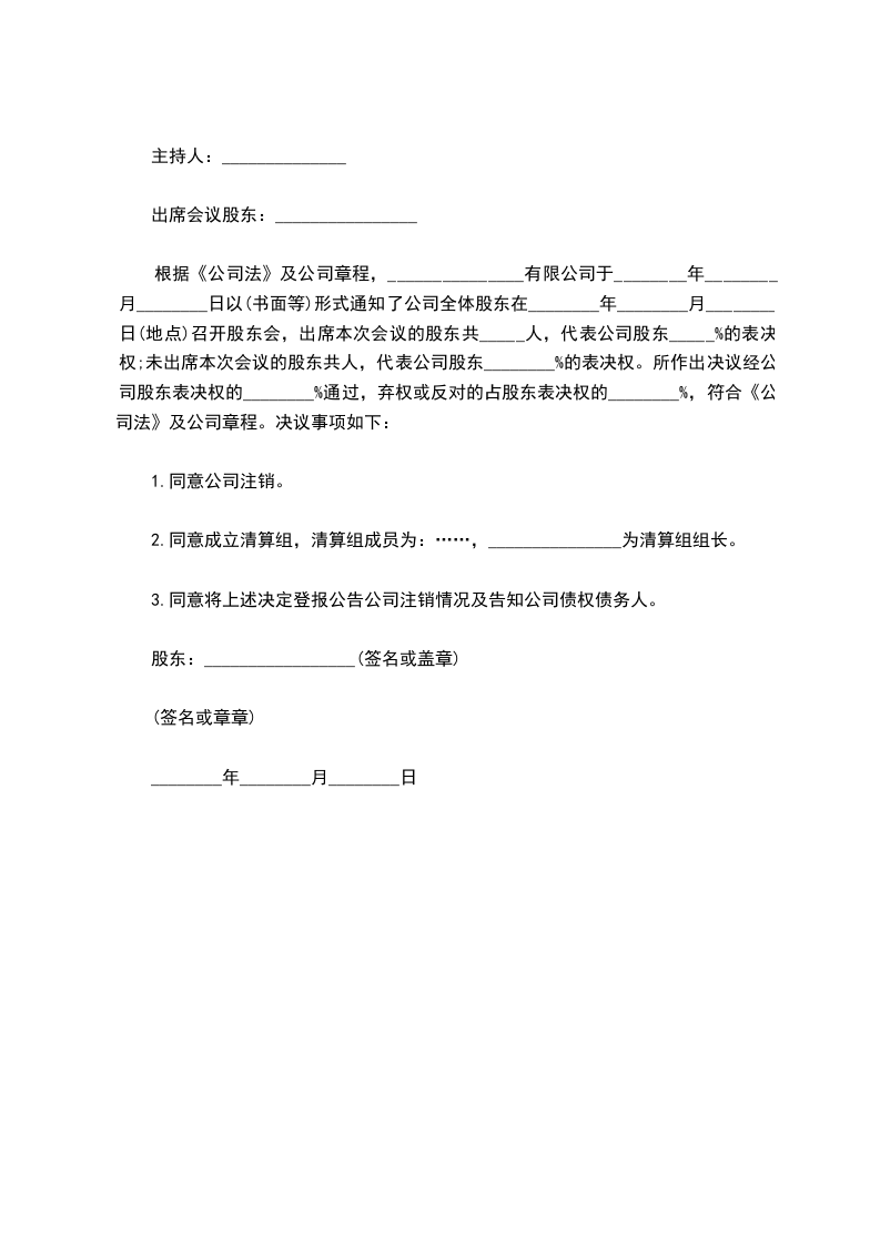 股东会决议主持人:______________