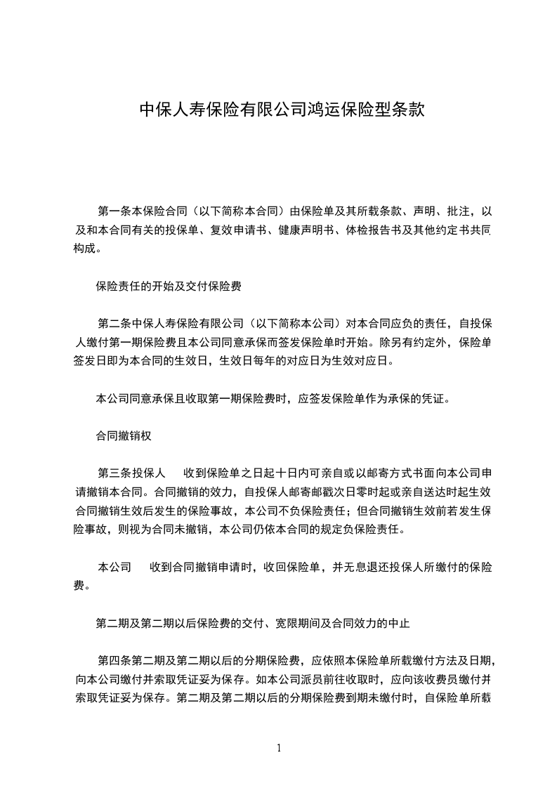 第一条 保险合同构成