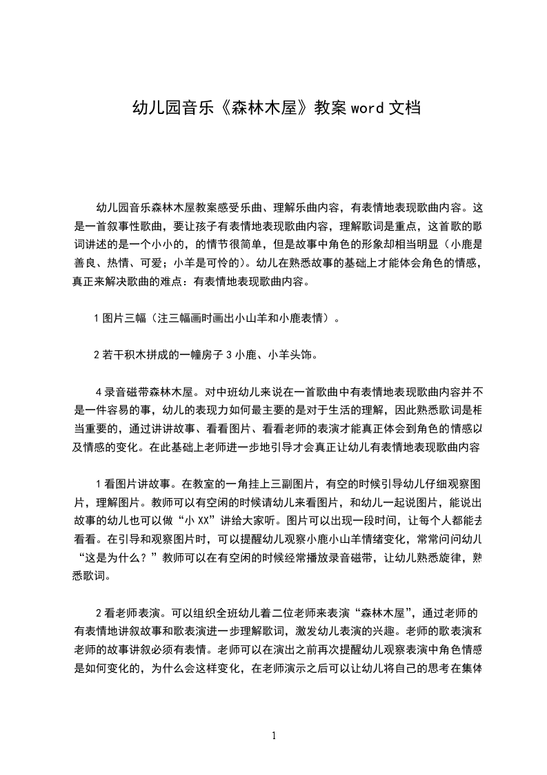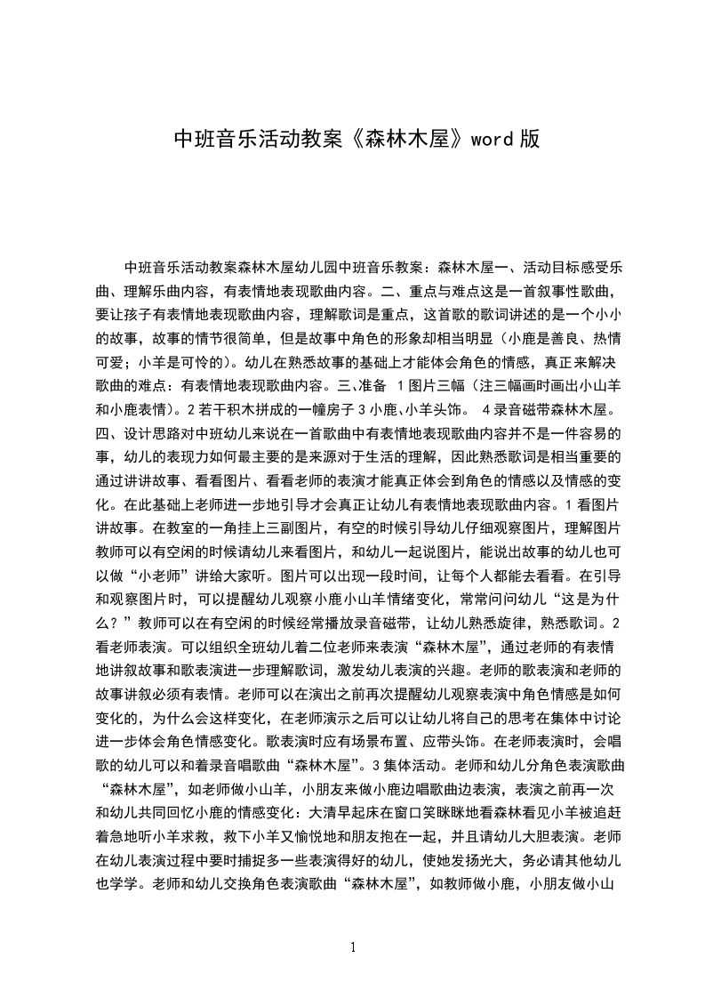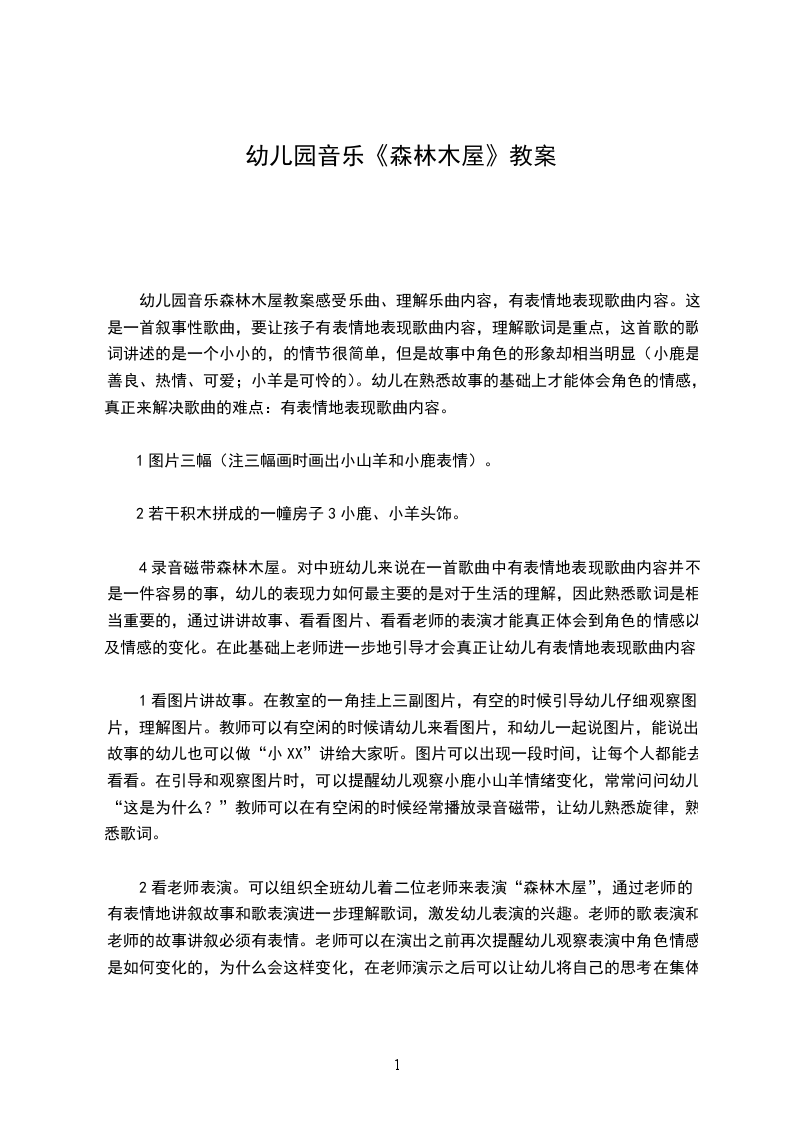 幼儿园音乐森林木屋教案感受乐曲、理解乐曲内容,有表情地表现歌曲内容。这是一首叙事性歌曲,要让孩子有表情地表现歌曲内容,理解歌词是重点,这首歌的歌词讲述的是一个小小的,的情节很简单,但是故事中角色的形象却相当明显(小鹿是善良、热情、可爱;小羊是可怜的)。幼儿在熟悉故事的基础上才能体会角色的情感,真正来解决歌曲的难点:有表情地表现歌曲内容。