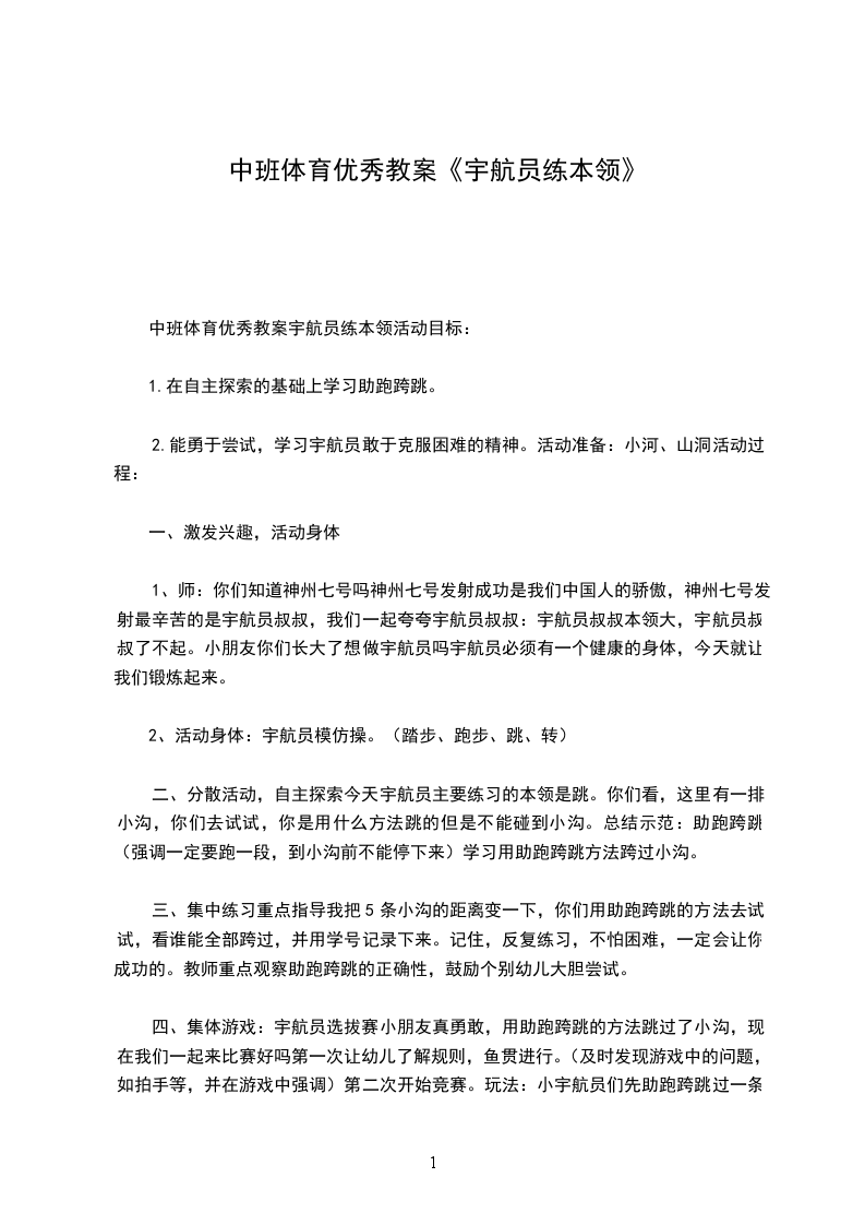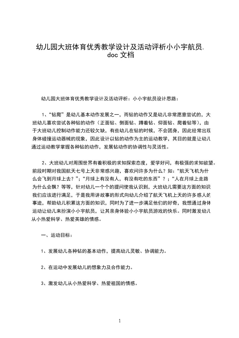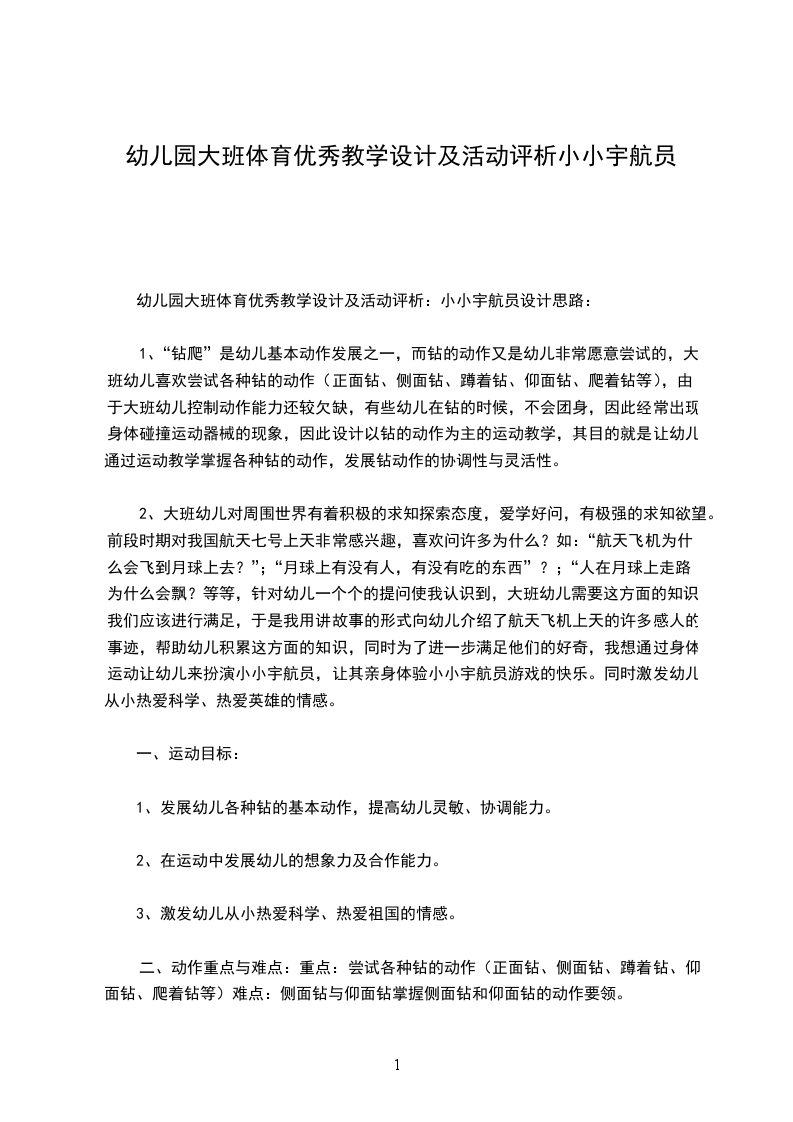 幼儿园大班体育优秀教学设计及活动评析:小小宇航员设计思路: