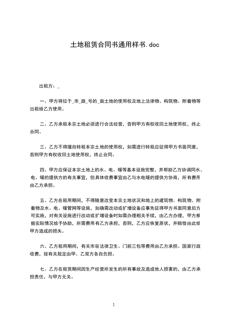 一、甲方将位于_市_路_号的_亩土地的使用权及地上法律物、构筑物、附着物等出租给乙方使用。