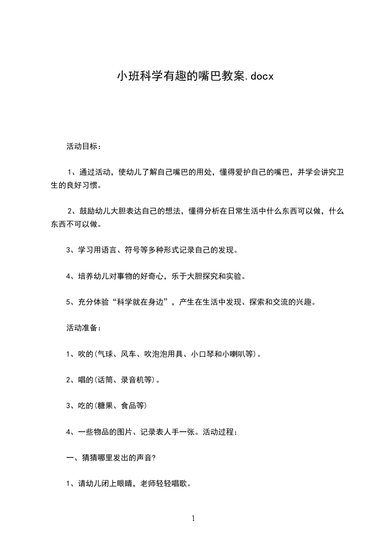 1、通过观察,感知人、动物嘴巴的外形特征,并进行猜想。