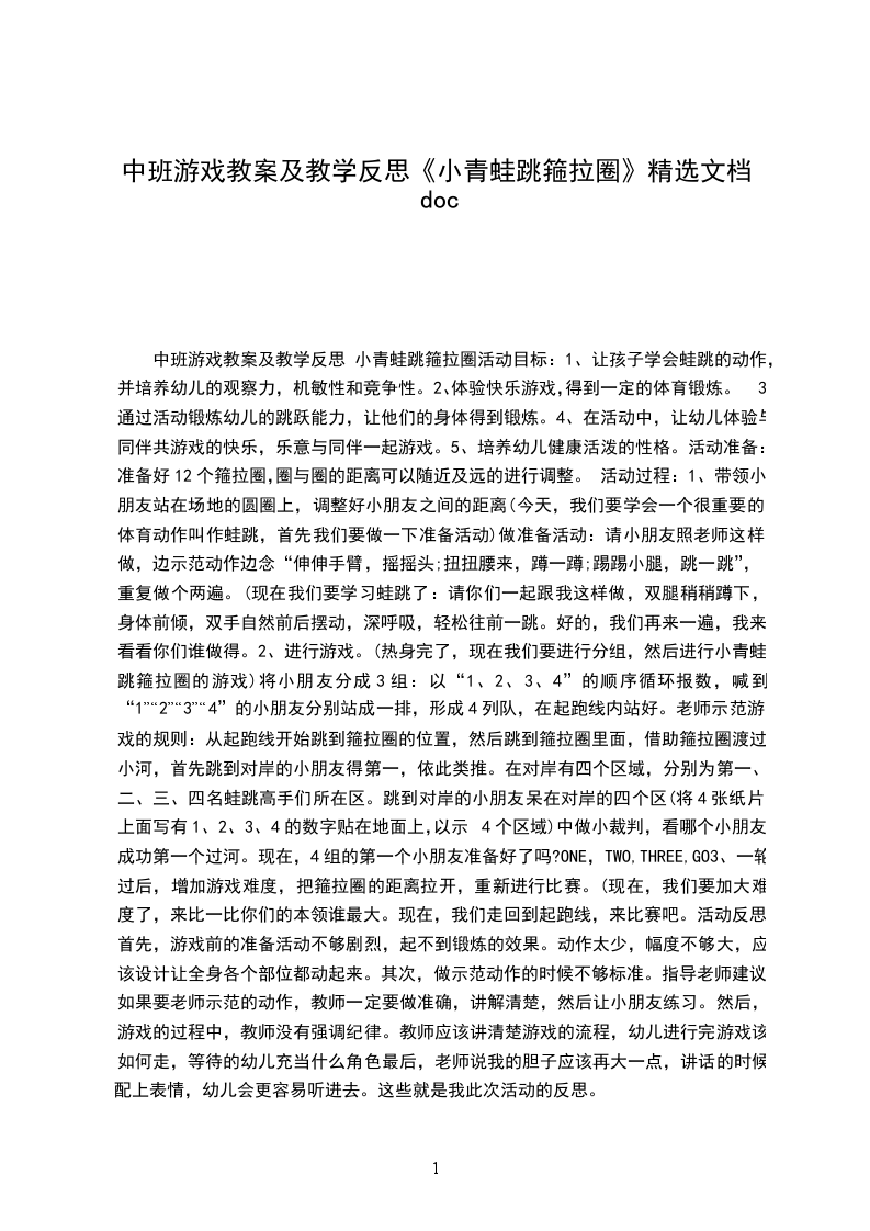 【幼儿园中班游戏小青蛙跳箍拉圈教案及反思】