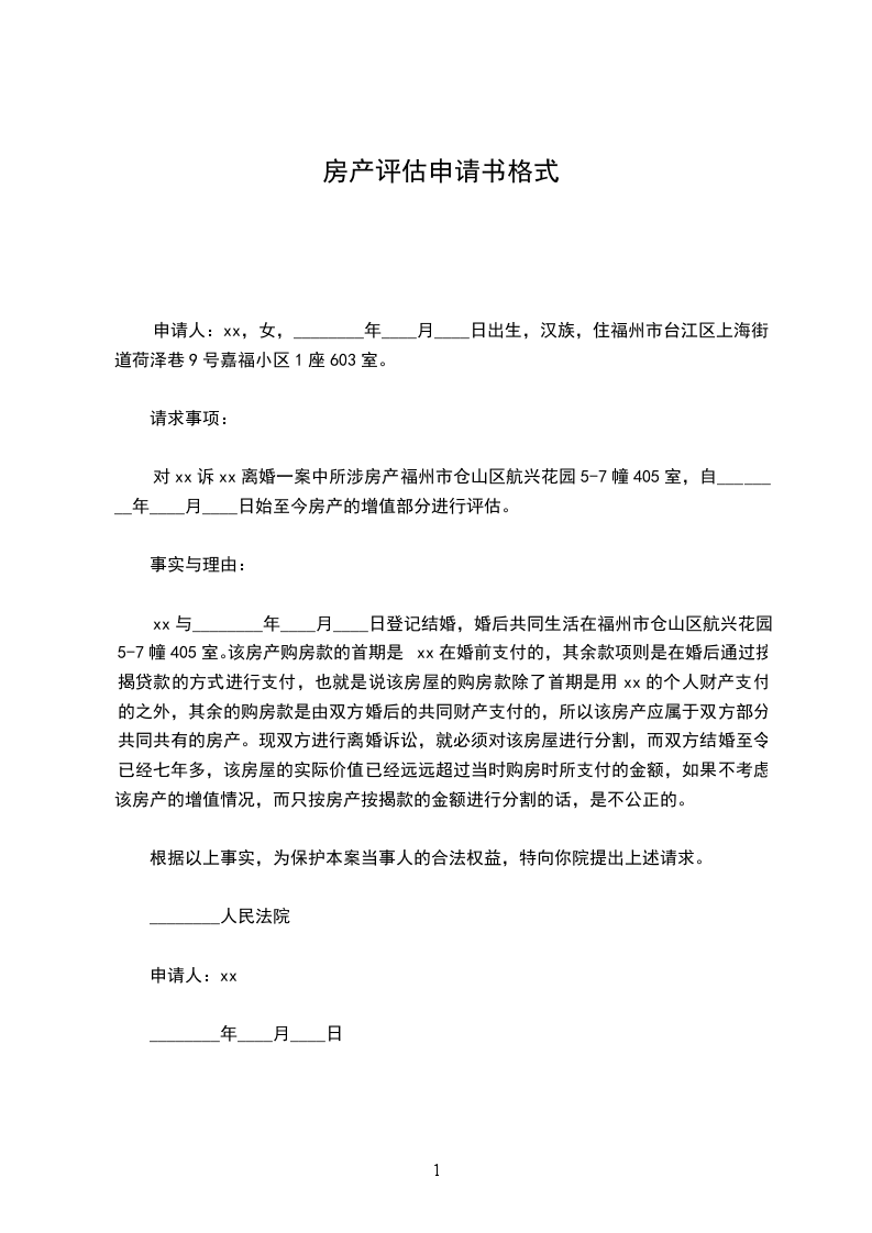 对xx诉xx离婚一案中所涉房产________,自________年____月____日始至今房产的增值部分进行评估。