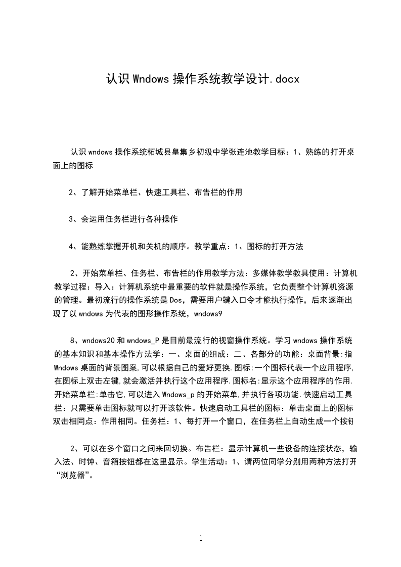 认识wndows操作系统柘城县皇集乡初级中学张连池教学目标:1、熟练的打开桌面上的图标