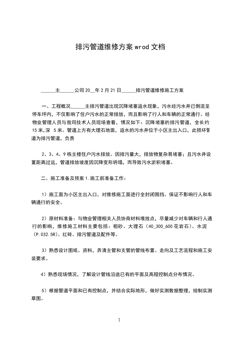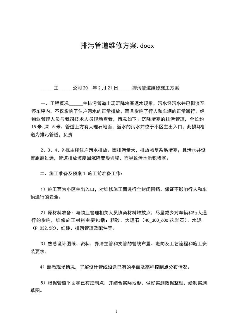 中天建设市政排水管道维修工程施工方案施工单位:广州市XX公司20__年9月2日