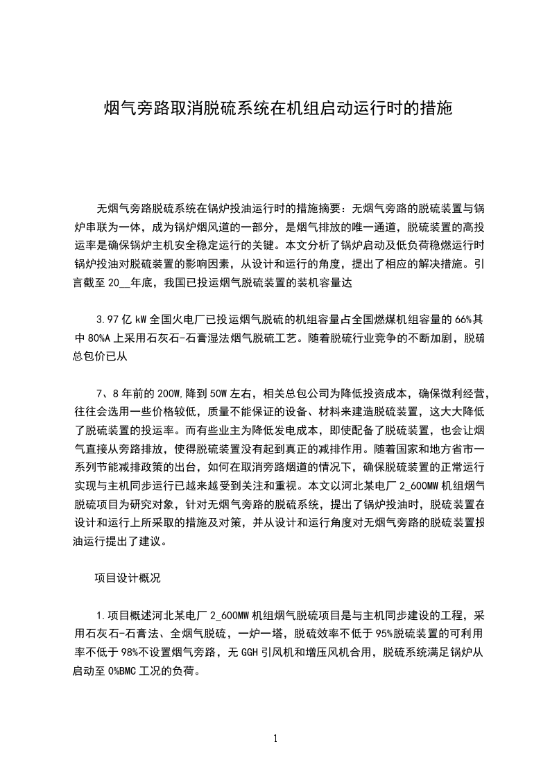 2工艺水系统简介机组FGD烟气脱硫技改工程所用的工艺水来源于电厂主体的工业水系统。本套工艺水系统提供给脱硫装置的所有用水。FGD烟气工程设1个工艺水箱,配置2台工艺水泵(1用1备),用作吸收塔系统用水、石灰石粉制浆、浆液管道冲洗、脱水系统用水等。配置2台除雾器冲洗水泵(1用1备),用作吸收塔除雾器的冲洗用水。氧化风机轴承、循环浆泵轴承的冷却水直接由工艺水箱提供。