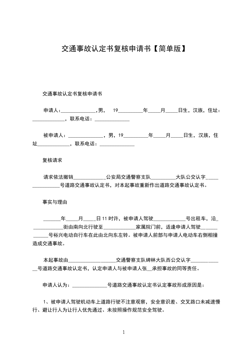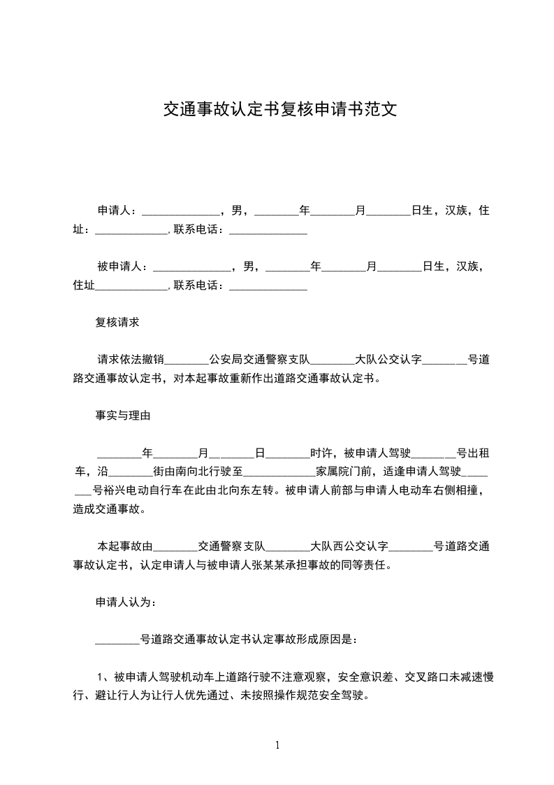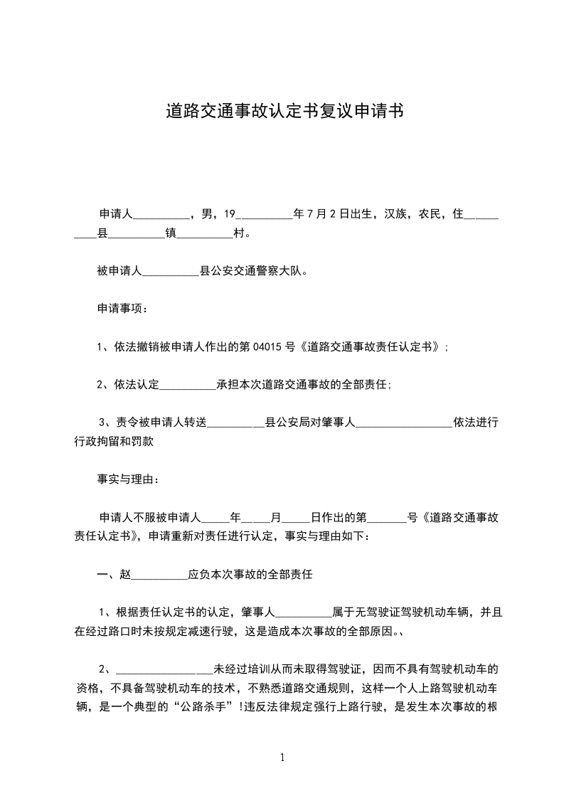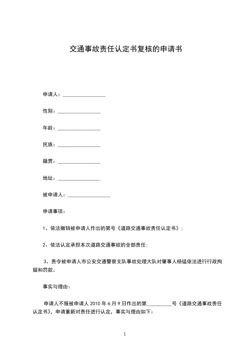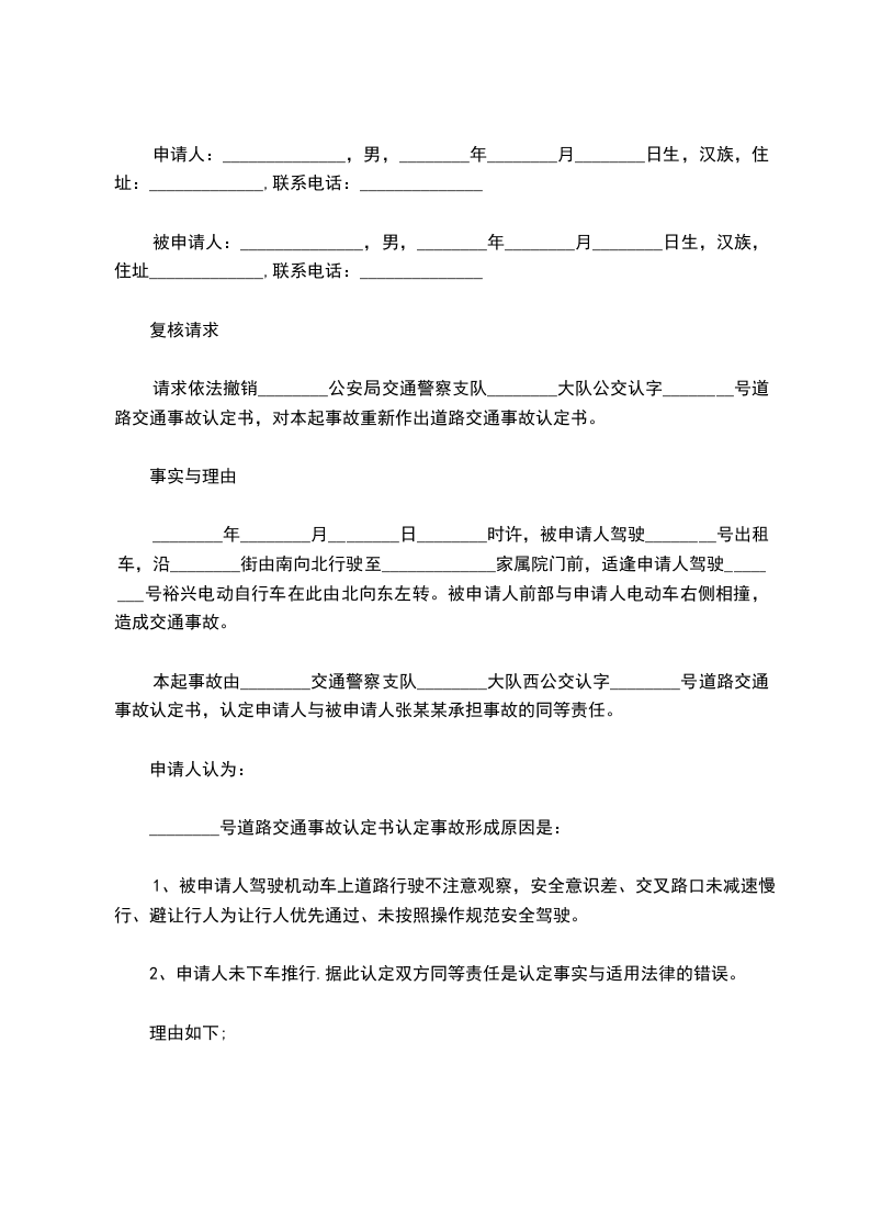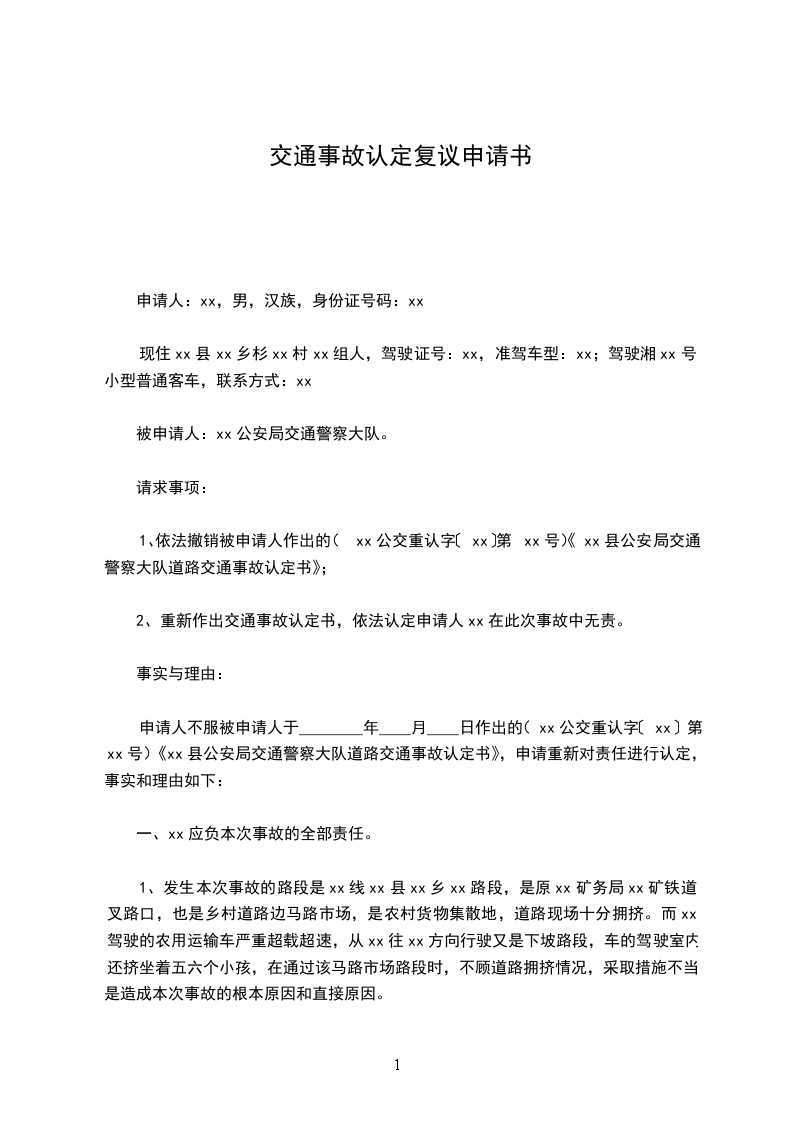 申请人不服被申请人于________年____月____日作出的(xx公交重认字〔xx〕第xx号)《xx县公安局交通警察大队道路交通事故认定书》,申请重新对责任进行认定,事实和理由如下: