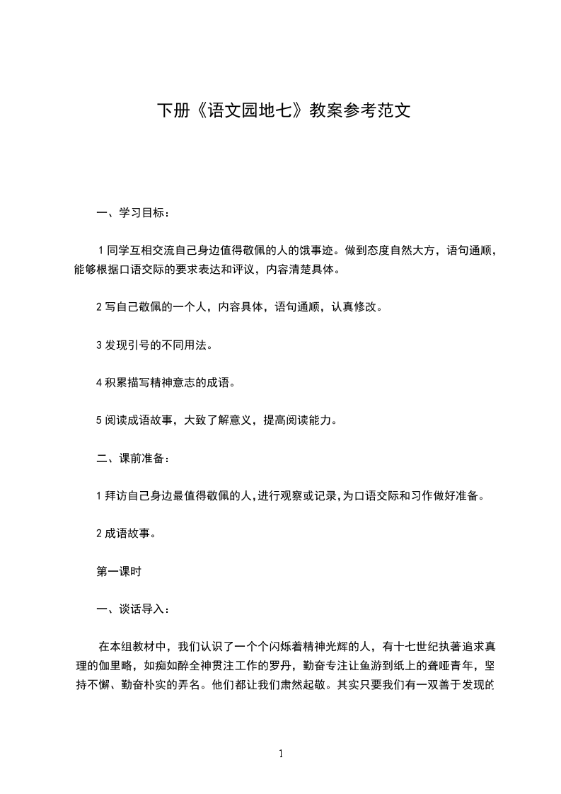 四、拓展创新语文七年级下册教师教学策划3教学目标