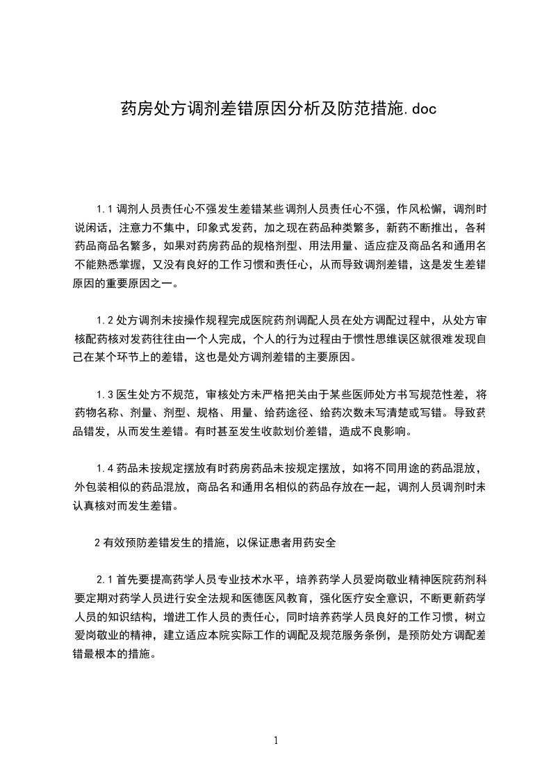 1.1调剂人员责任心不强发生差错某些调剂人员责任心不强,作风松懈,调剂时说闲话,注意力不集中,印象式发药,加之现在药品种类繁多,新药不断推出,各种药品商品名繁多,如果对药房药品的规格剂型、用法用量、适应症及商品名和通用名不能熟悉掌握,又没有良好的工作习惯和责任心,从而导致调剂差错,这是发生差错原因的重要原因之一。