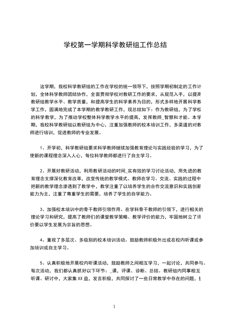 这学期,我校科学教研组的工作在学校的统一领导下,按照学期初制定的工作计划,全体科学教师团结协作,全面贯彻学校对教研工作的要求,从规范入手,以提高教研组教学水平、教学质量,和提高学生的科学素养为目的,形式多样地开展科学教学工作,圆满地完成了本学期的教学教研工作,现总结如下:作为教研组,为了学校的科学教学,为了推动学校整体科学教学水平的提高,发挥教师_智慧和才能。本学期,我校科学教研组以教研组为中心,注重加强教师的校本培训工作,多渠道的对教师进行培训,促进教师的专业发展。