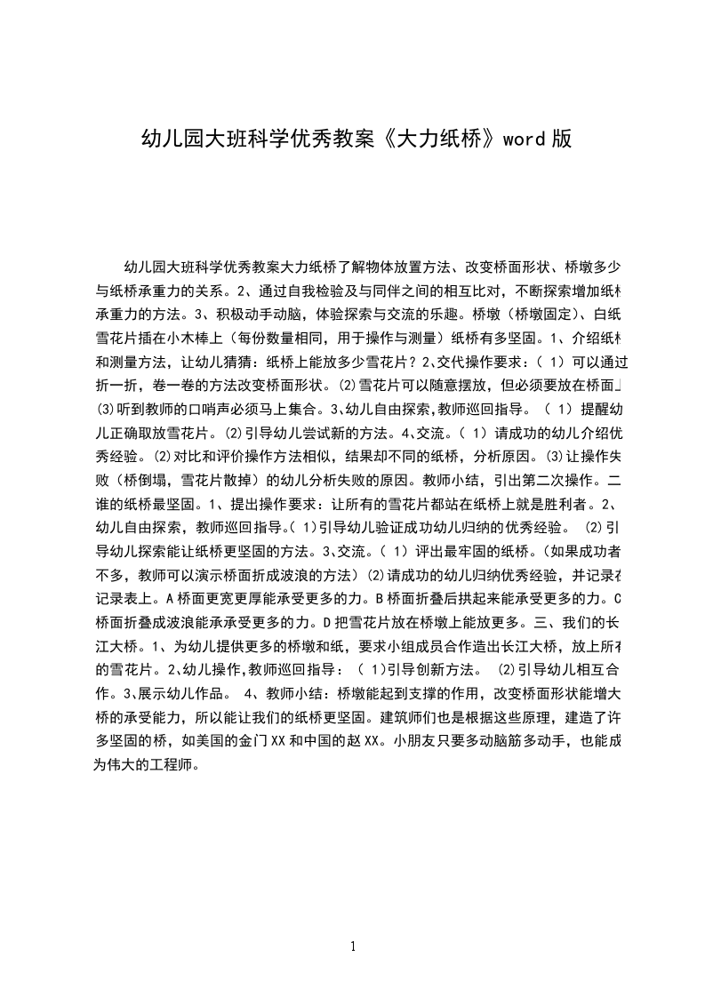 4、教师小结:桥墩能起到支撑的作用,改变桥面形状能增大桥的承受能力,所以能让我们的纸桥更坚固。建筑师们也是根据这些原理,建造了许多坚固的桥,如美国的金门XX和中国的赵XX。小朋友只要多动脑筋多动手,也能成为伟大的工程师。