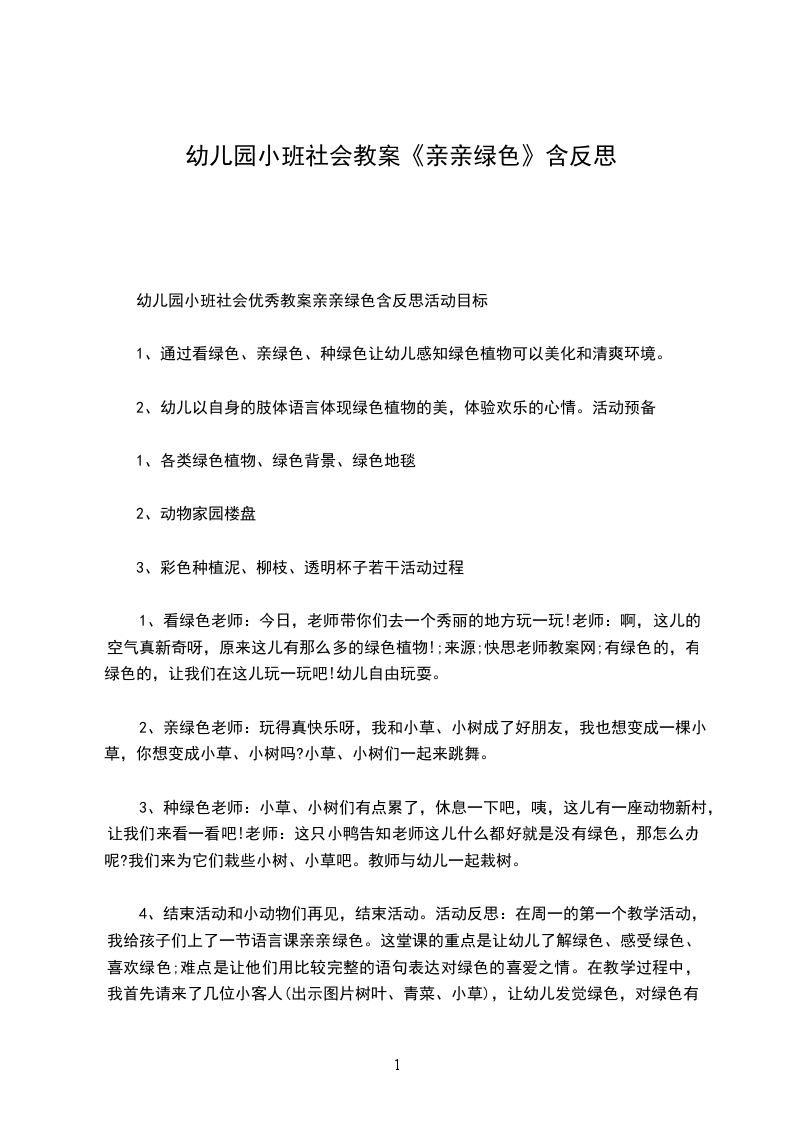 幼儿园小班社会优秀教案亲亲绿色含反思活动目标