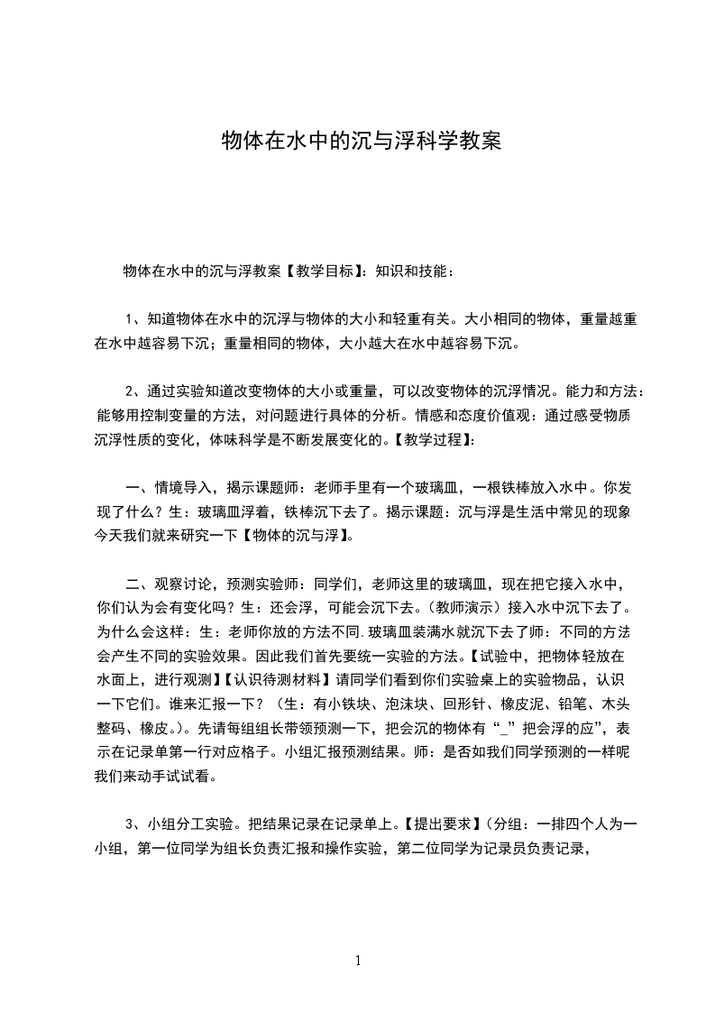 3、实验操作幼儿实验,并把自己的实验结果告诉小朋友听。师巡回指导,帮助幼儿正确运用“沉”和“浮”来表述。“现在谁愿意把你的发现讲给大家听听?”“我拿的是西红柿,我发现西红柿是浮起来的。”