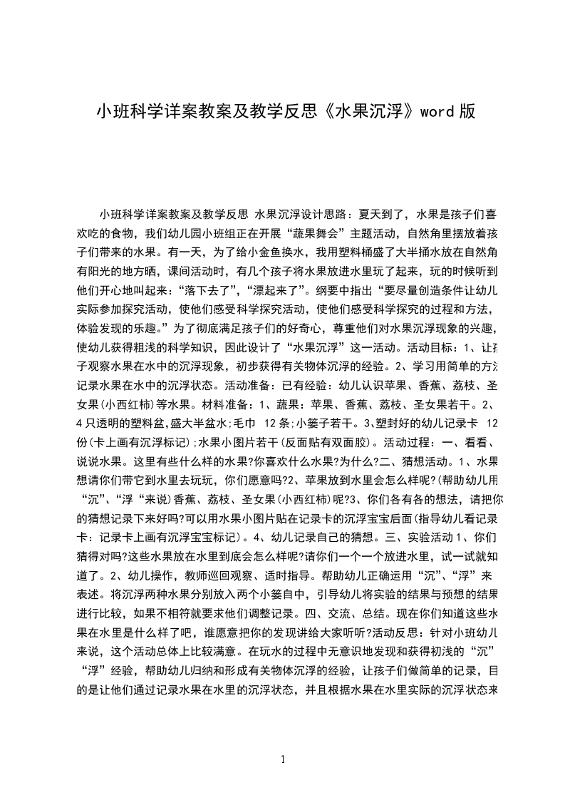 五、活动效果:通过活动,幼儿能够在教师指导下直观的观察到水果在水中的沉浮现象,激发了幼儿的学习探索兴趣,获得了初步的沉浮经验,体验到成功的满足,通过直观的教具幼儿认识标记“”、“”,并大胆尝试将自己的想法经验与其他幼儿共享,根据标记及所得到的实验结果将水果按沉浮特征分类。