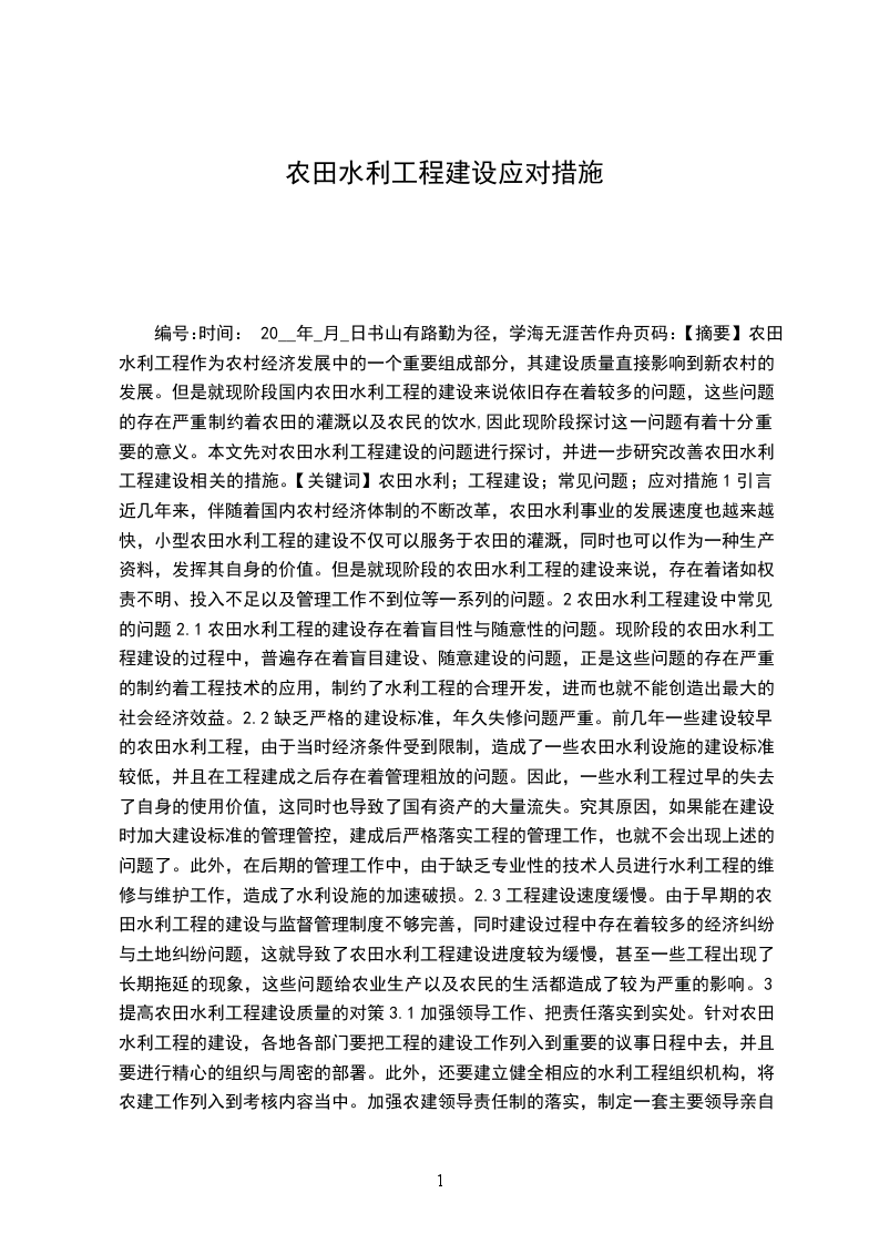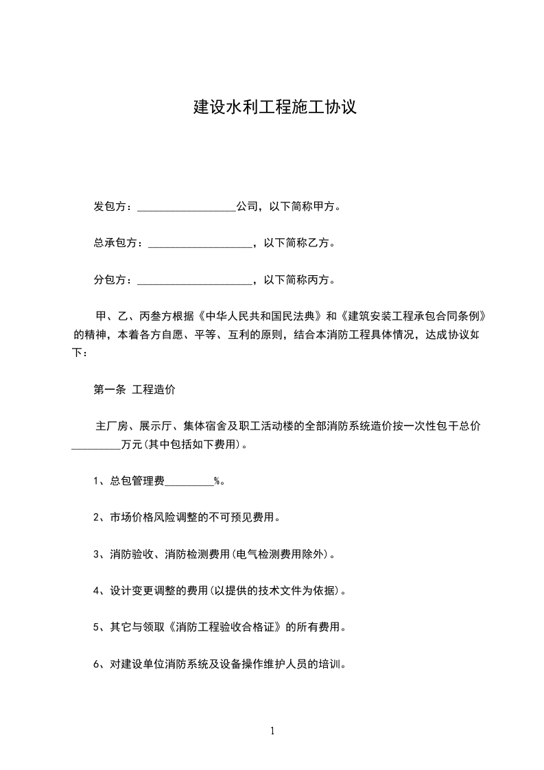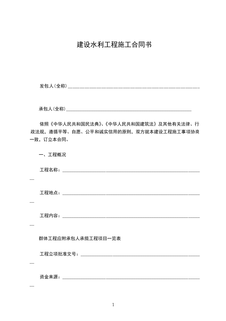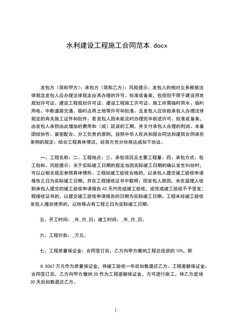 一、工程名称:二、工程地点:三、承包项目及主要工程量:四、承包方式:包工包料。风险提示:关于实际竣工日期的规定当因实际竣工日期的确认发生纠纷时,可以以相关规定参照具体情形:工程经竣工验收合格的,以承包人提交竣工验收申请报告之日为实际竣工日期,并在工程接收证书中载明;因发包人原因,未在监理人收到承包人提交的竣工验收申请报告42天内完成竣工验收,或完成竣工验收不予签发工程接收证书的,以提交竣工验收申请报告的日期为实际竣工日期;工程未经竣工验收,发包人擅自使用的,以转移占有工程之日为实际竣工日期。