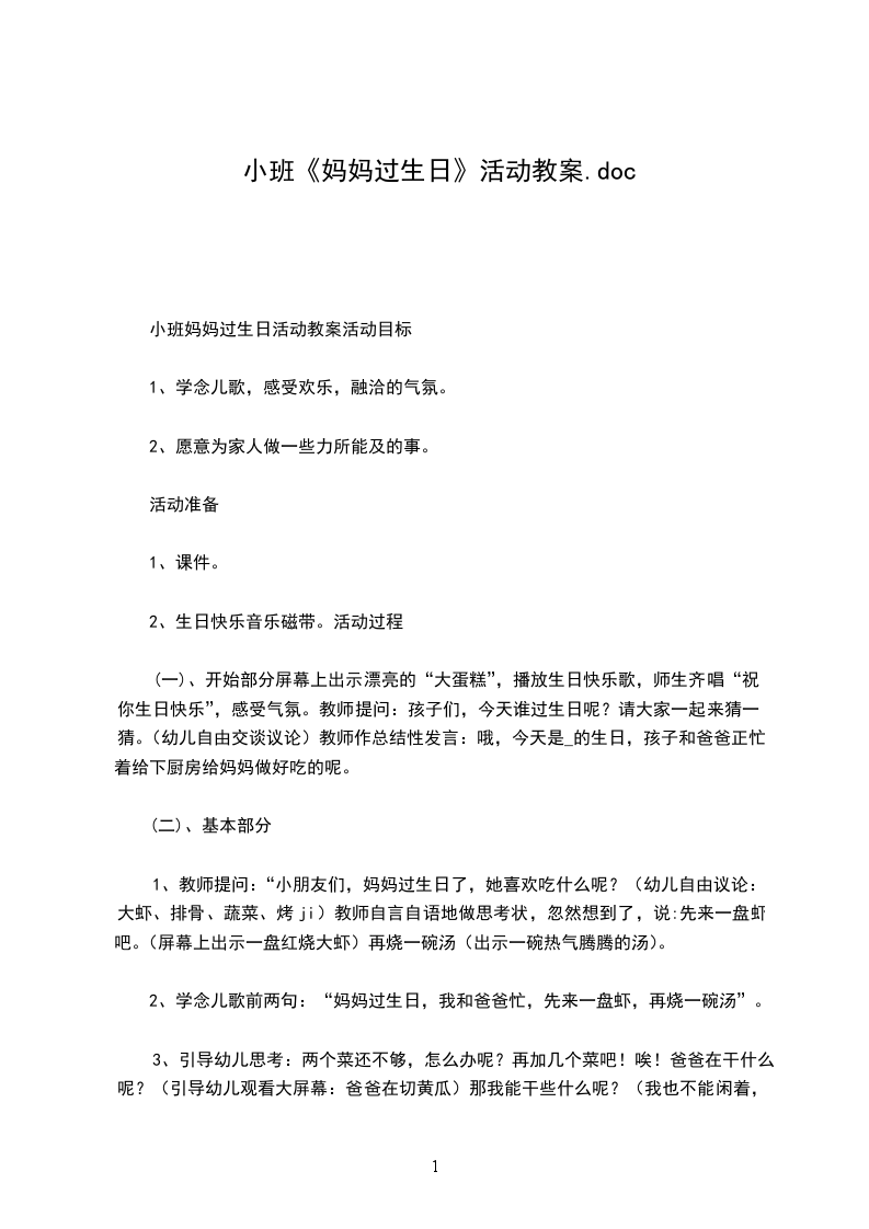小班妈妈过生日活动教案活动目标