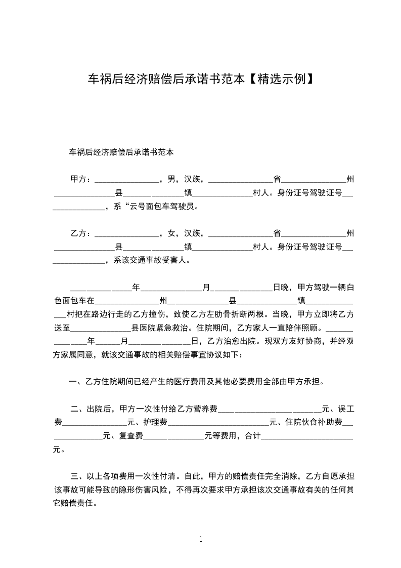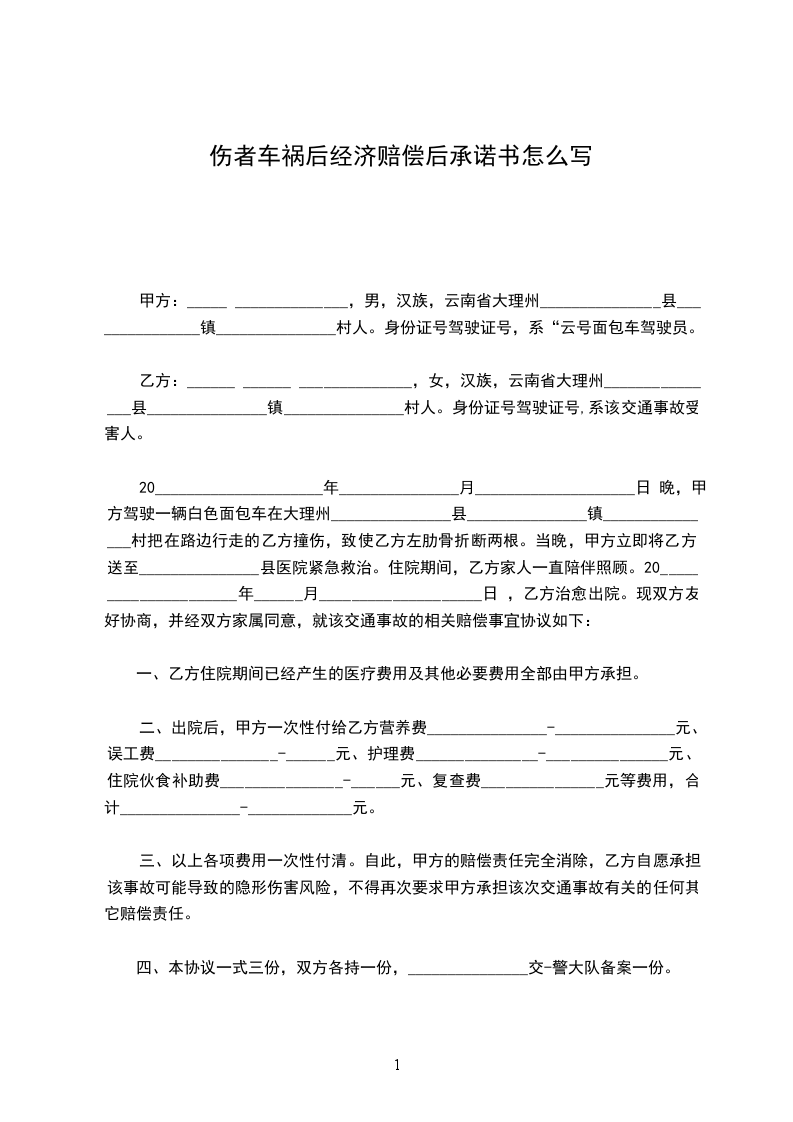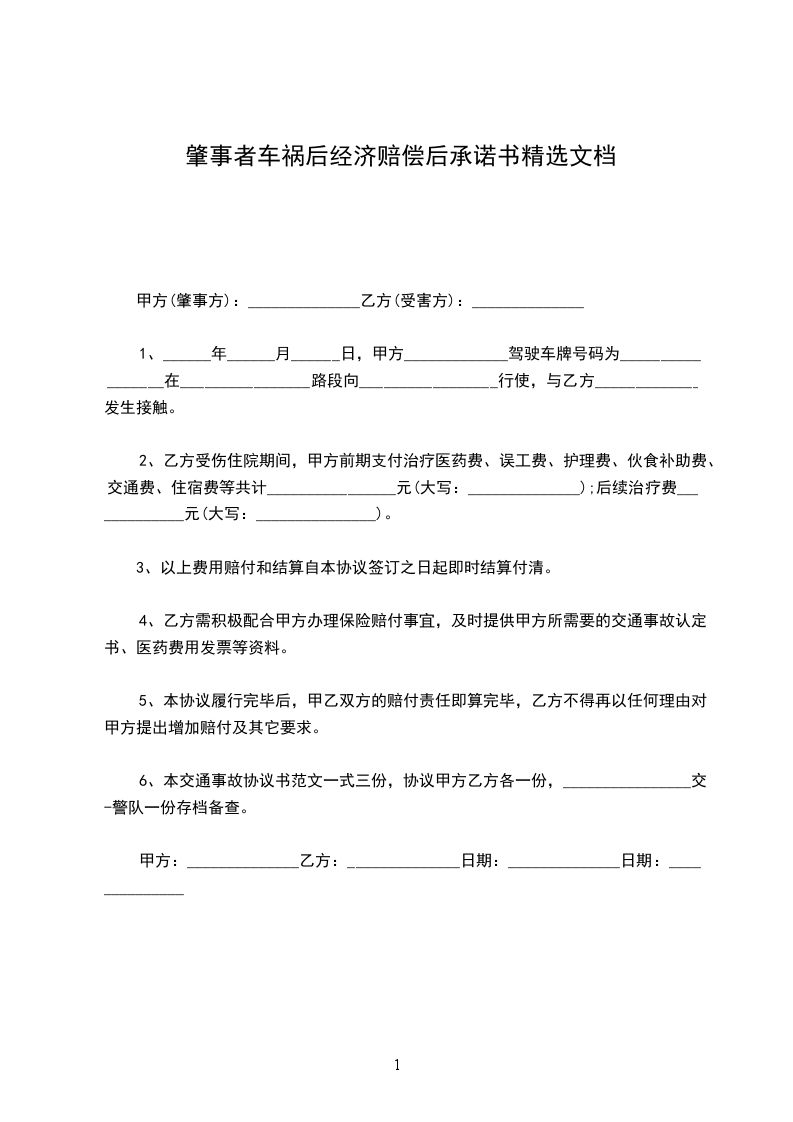 5、本协议履行完毕后,甲乙双方的赔付责任即算完毕,乙方不得再以任何理由对甲方提出增加赔付及其它要求。
