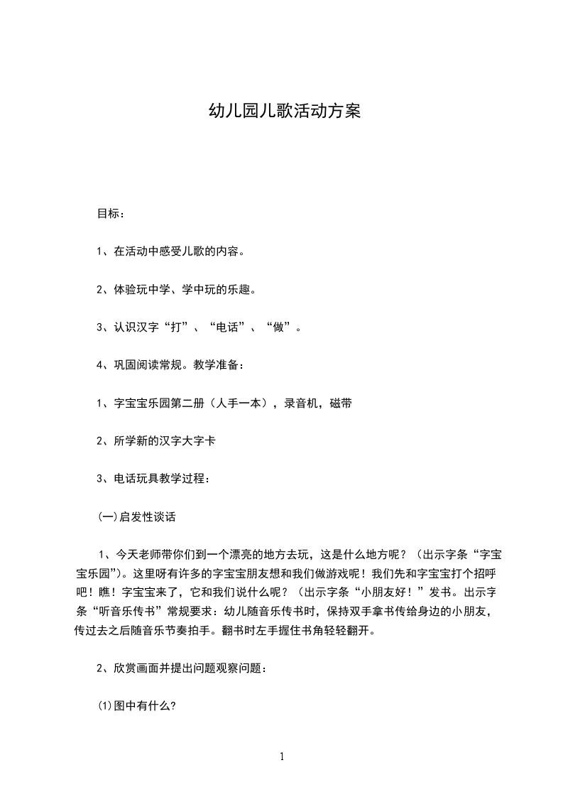 3、电话玩具教学过程: