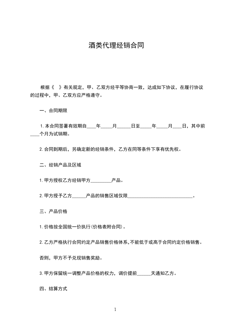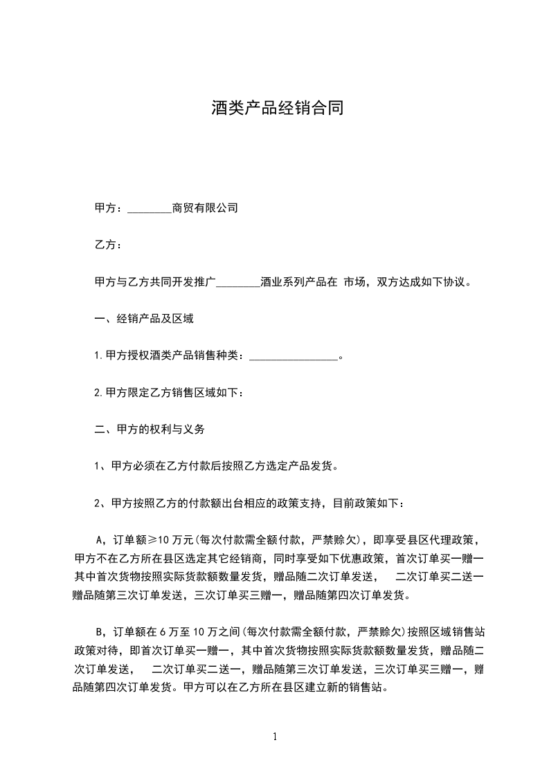 1.签订合同后,甲方为乙方每个品相提供一件酒的铺货支持,甲方供货价以外销售利润归乙方所有。